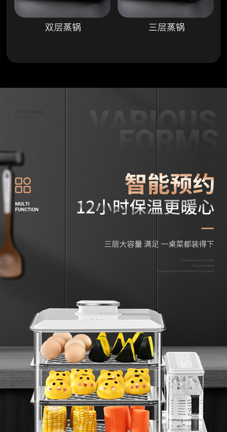 Kitchen multifunctional integrated electric steamer household intelligent reservation large capacity automatic three-layer electric steamer