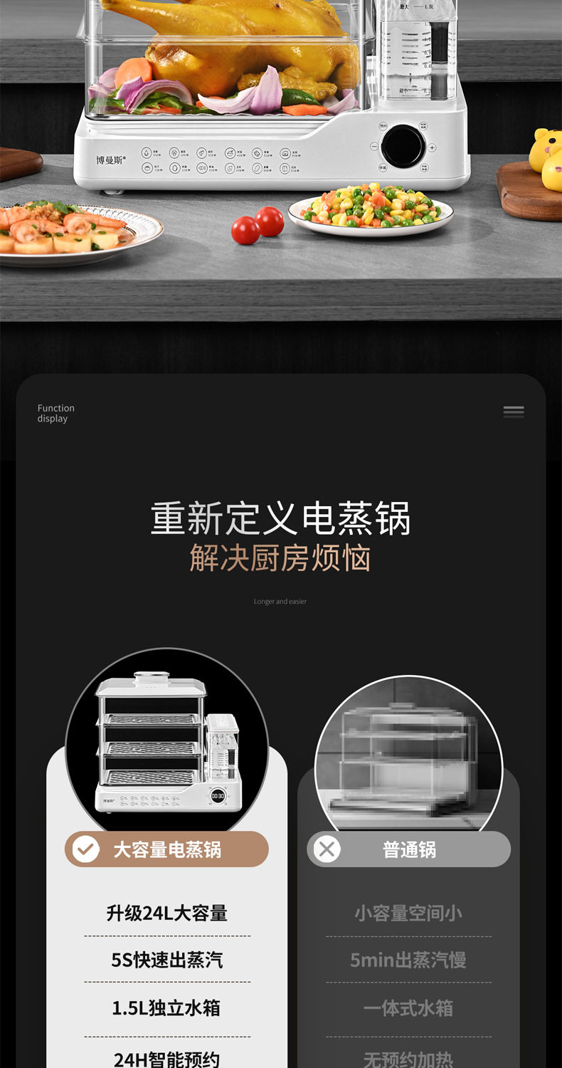 | Color | White 24L three-layer electric steamer |