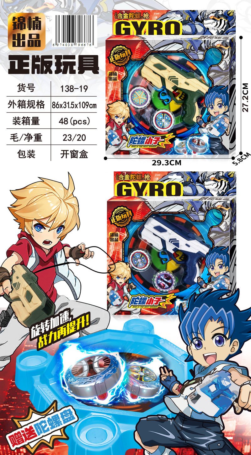 | Color | 037-d8 battle top racing disk [2 colors random],037-d9 battle top racing disc [2 colors random],988-8 expedition team gyro set [color box],Gyro boy gun 138-19 [2 types randomly issued 1],War beast double soul sword with 4 tops 138-16 [big gift box],688-9 transforming robot gyro set [2 colors randomly],688-12 golden queen bee top transformation [2 colors randomly],138-27 gyro sword and gun combination set [2 colors random],138-26 double gun gyro set [large gift box],138-28 gyro double gun combination set [super large gift box],Wei state double heroes standard war tuo set ws6631 [big gift box],Shu dynasty double heroes standard war bodhisattva set ws6632 [big gift box],Wu guo shuangxiong standard war tuo set ws6633 [big gift box],Wei state double heroes advanced weapon set ws6831 [super large gift box],Sichuan duo classy weapon set ws6832 [super large gift box],Wu guo shuangxiong advanced weapon set ws6833 [super large gift box] |