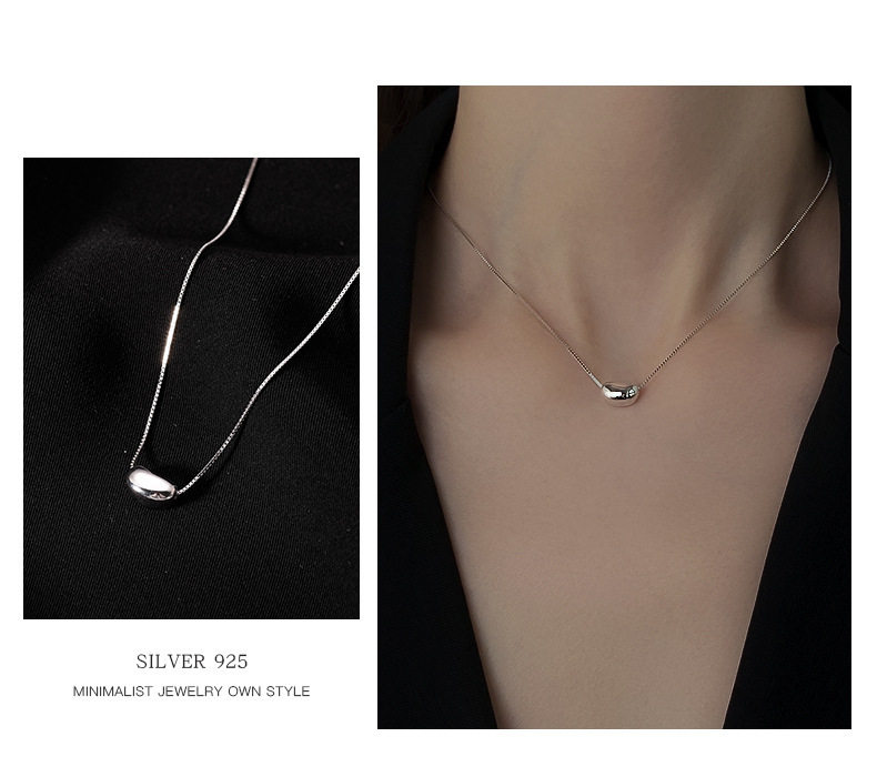 925 Sterling Silver Necklace Women's Acacia Bean Collarbone Chain Simple Niche Design Sense Elegant Pendant Jewelry ins Cold Style