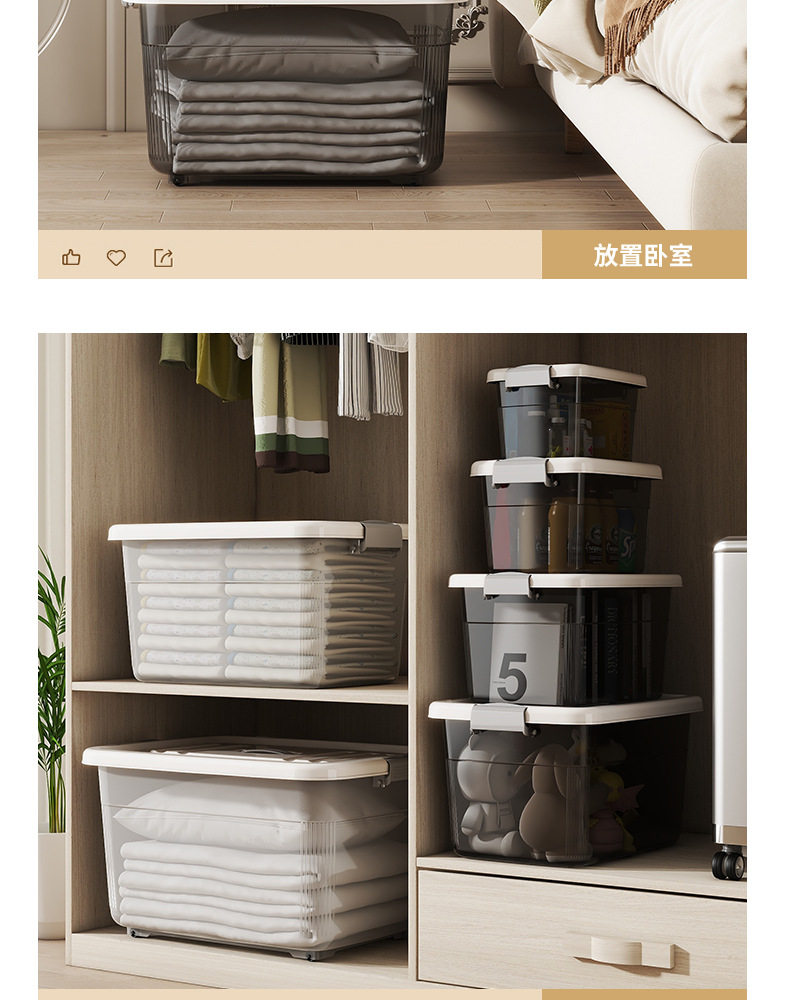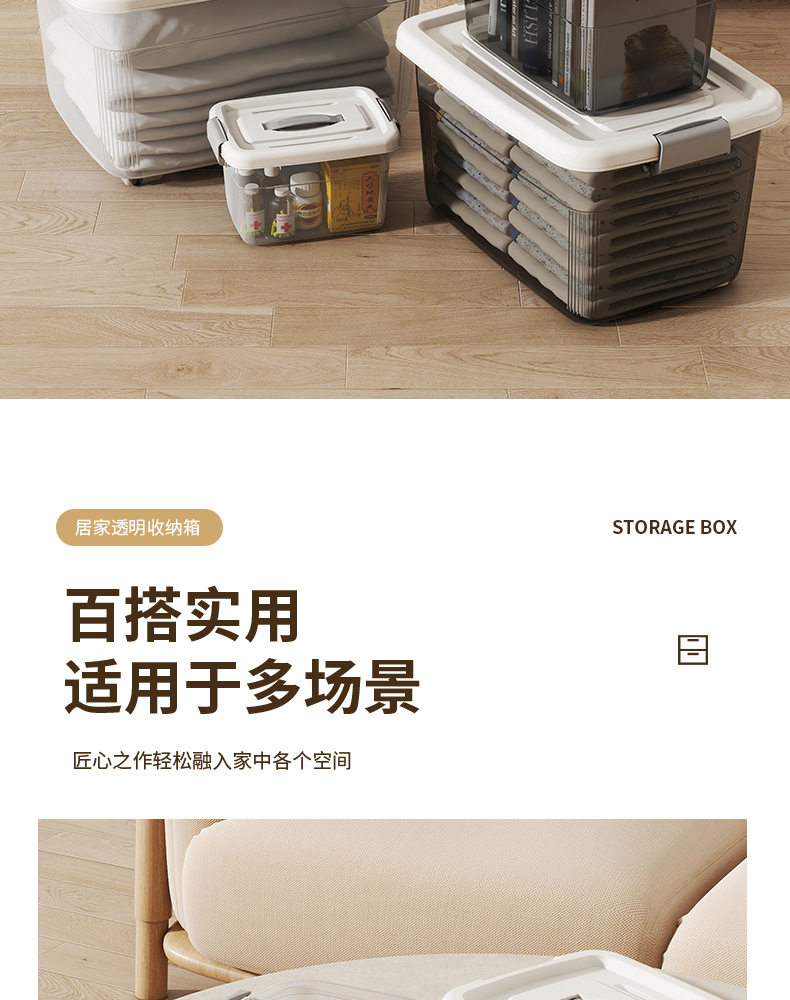 Transparent Storage Box Finishing Box Plastic Box Lid Portable Car Storage Box Large and Small Clothes Storage Box