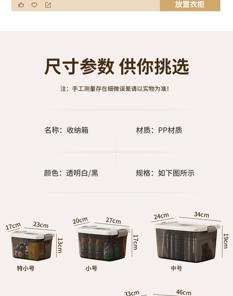 | Color | Small size transparent black: length 22 width 16.5 height 13,Small size transparent: length 22 width 16.5 height 13,Medium size transparent black: length 26 width 20.5 height 16.5,Medium transparent: length 26 width 20.5 height 16.5,Large transparent black: length 33.9, width 24.2, height 18.1,Large transparent: length 33.9, width 24.2, height 18.1,Extra large transparent black: length 40 width 28.6 height 21.2,Extra large transparent white: length 40 width 28.6 height 21.2,Extra large transparent black: length 46.5 width 33 height 23,Extra large transparent: length 46.5 width 33 height 23,Wheeled giant transparent black: length 53 width 39 height 30,Wheeled giant transparent white: length 53 width 39 height 30,Wheeled big mac translucent black: length 60 width 45.5 height 34.5,Wheeled giant transparent white: length 60 width 45.5 height 34.5 |