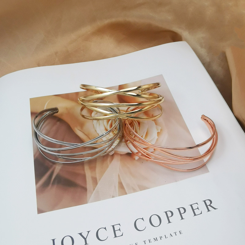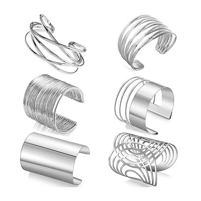 Cross-border Hot Selling European and American Kwa Hollow Metal Pattern Iron Open Bracelet Personalized Wire Punk Bracelet Set
