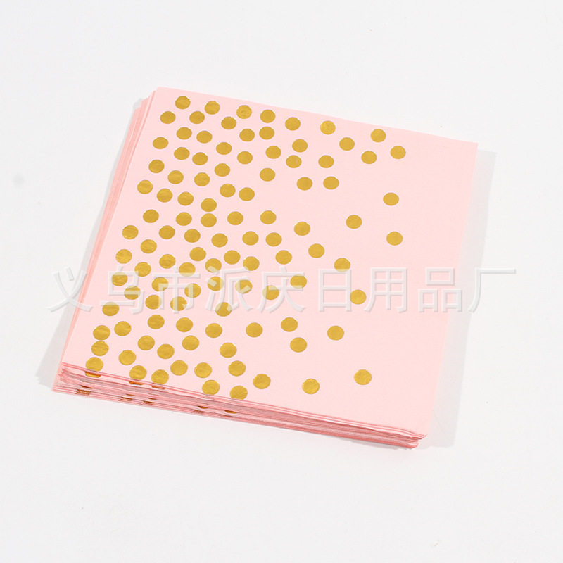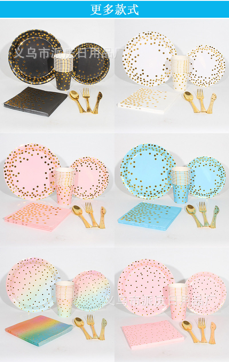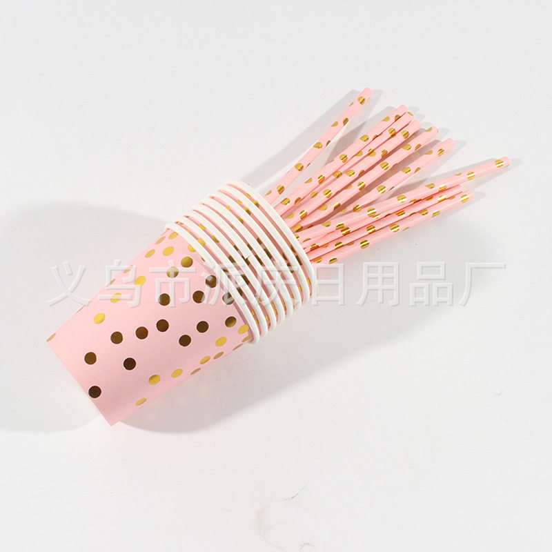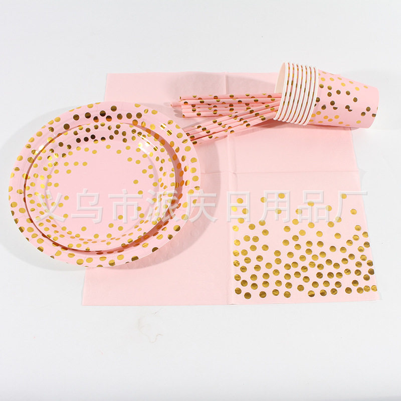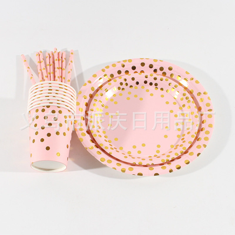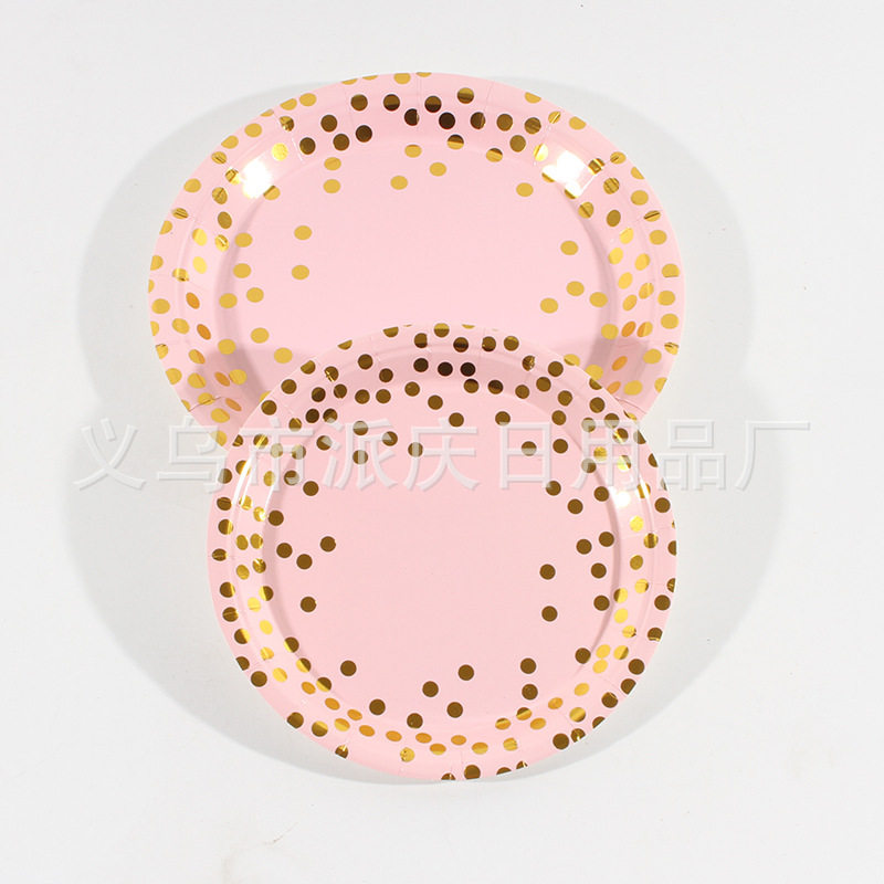 Pink Hot Stamping Polka Dot Paper Plate Paper Cup Set Wholesale Birthday Party Supplies Paper Plate Disposable Cake Plate in Stock