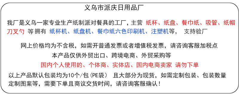 | Specifications | Paper cup,7inch plate,9inch plate,20 napkins,10 straws,10 knives,10 forks,10 spoons |