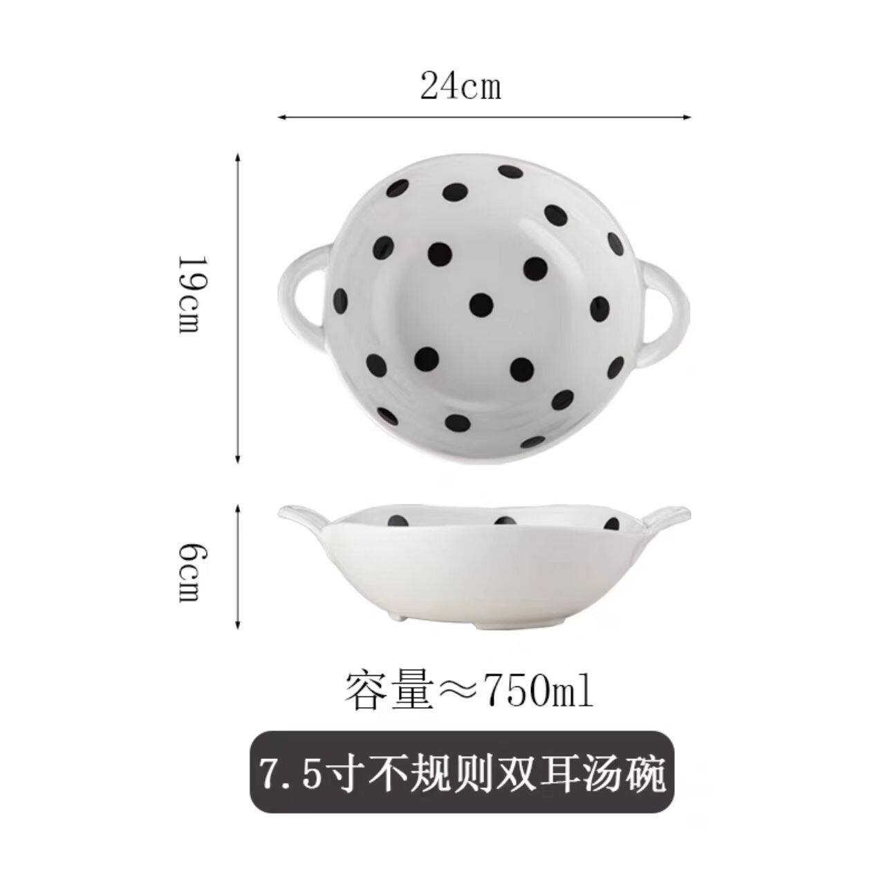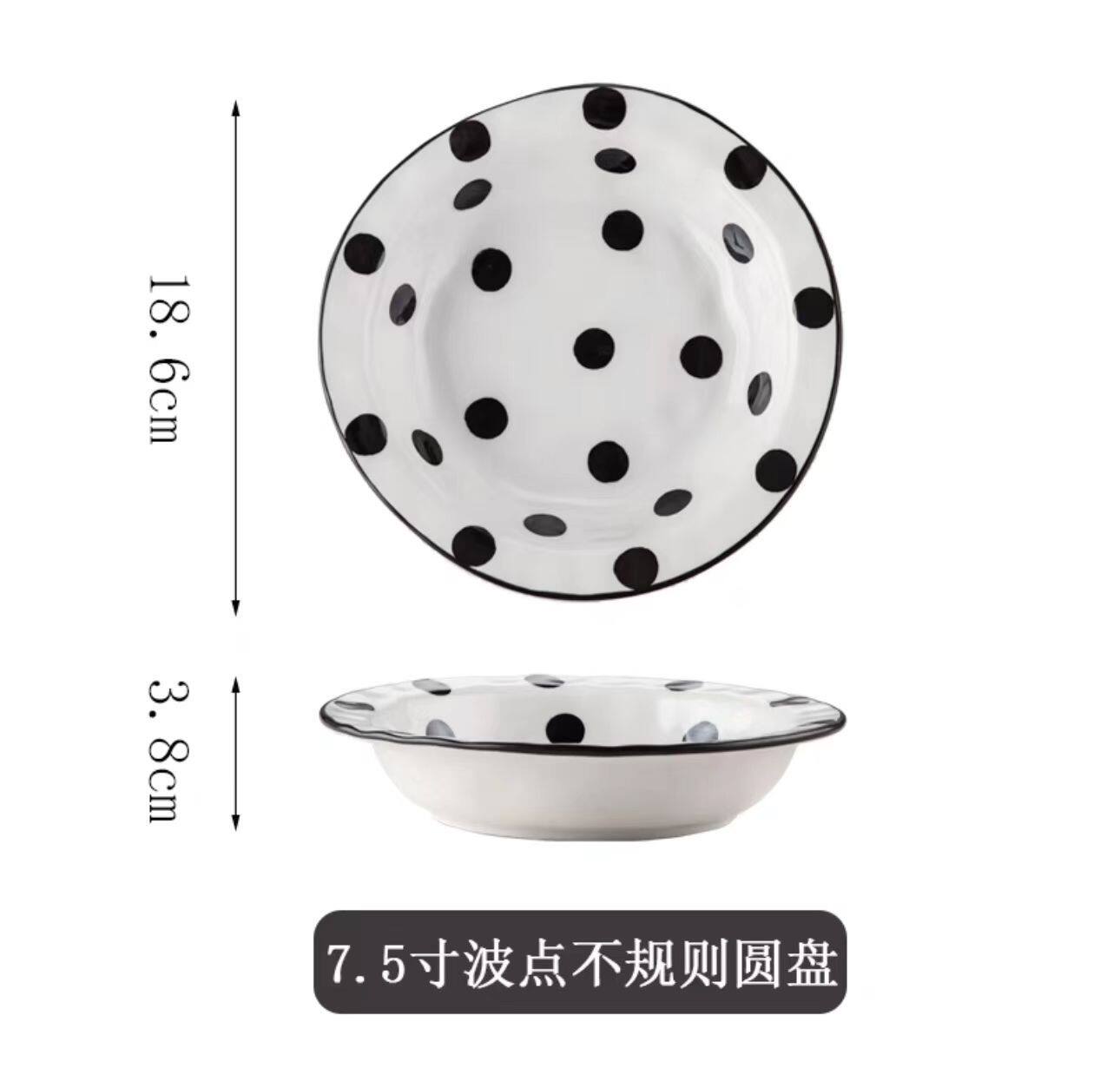 French Retro Polka Dot Underglaze Color Ceramic Tableware Hand Kneading Irregular Art Cake Plate Binaural Baking Plate Salad Bowl