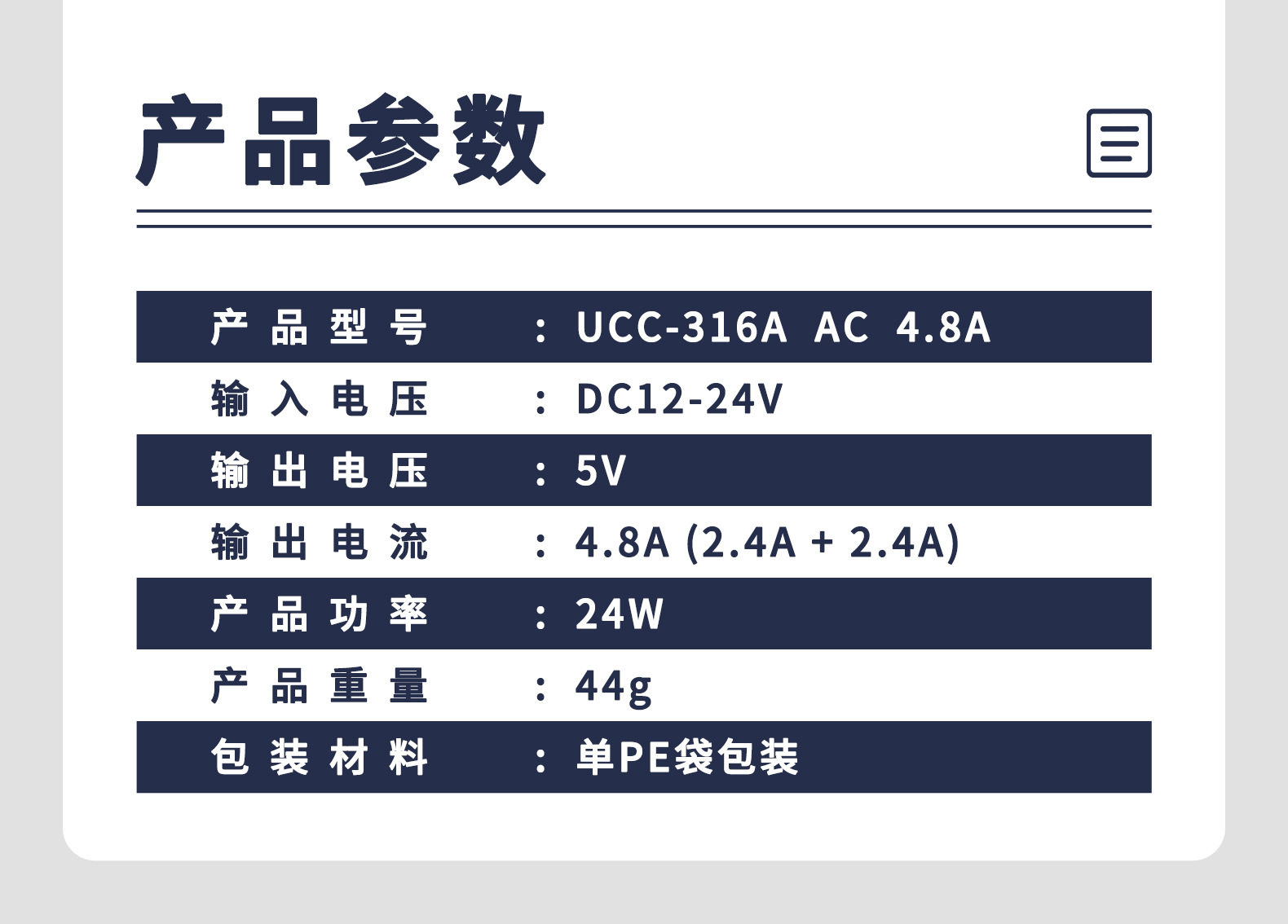 | Model | UCC-316A AC4.8A,UCC-316A QC+PD |