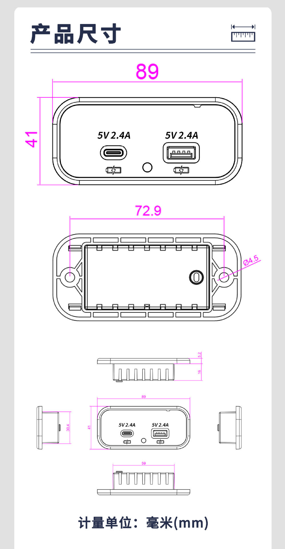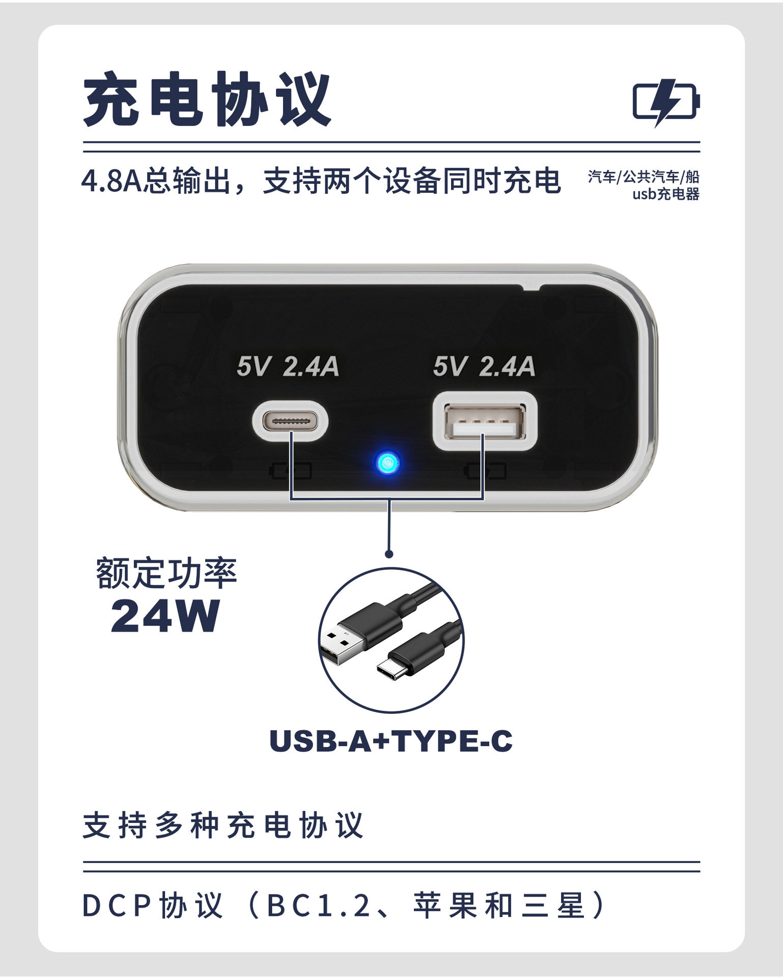 Car Charger 4.8A car RV bus modified USB car charger dual-port fast charging multi-function car charger