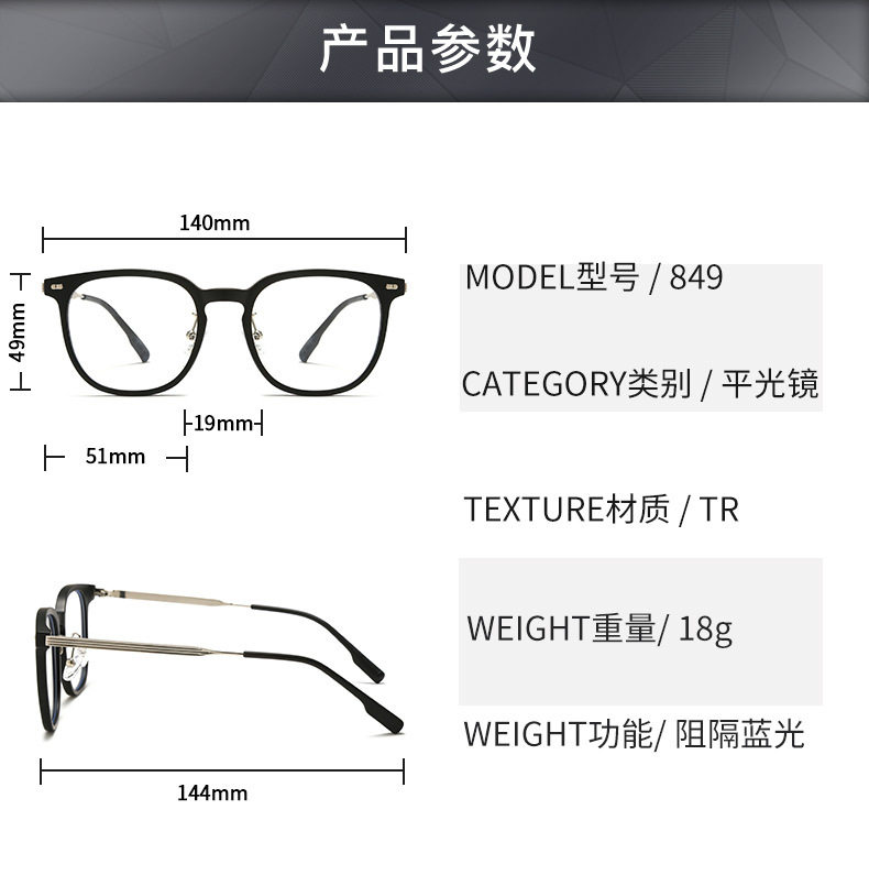 New TR90 Anti-blue Glasses Fashion Internet Popular Plain Glasses Frame Women's 849 Korean Style Artistic Flat Glasses Frame