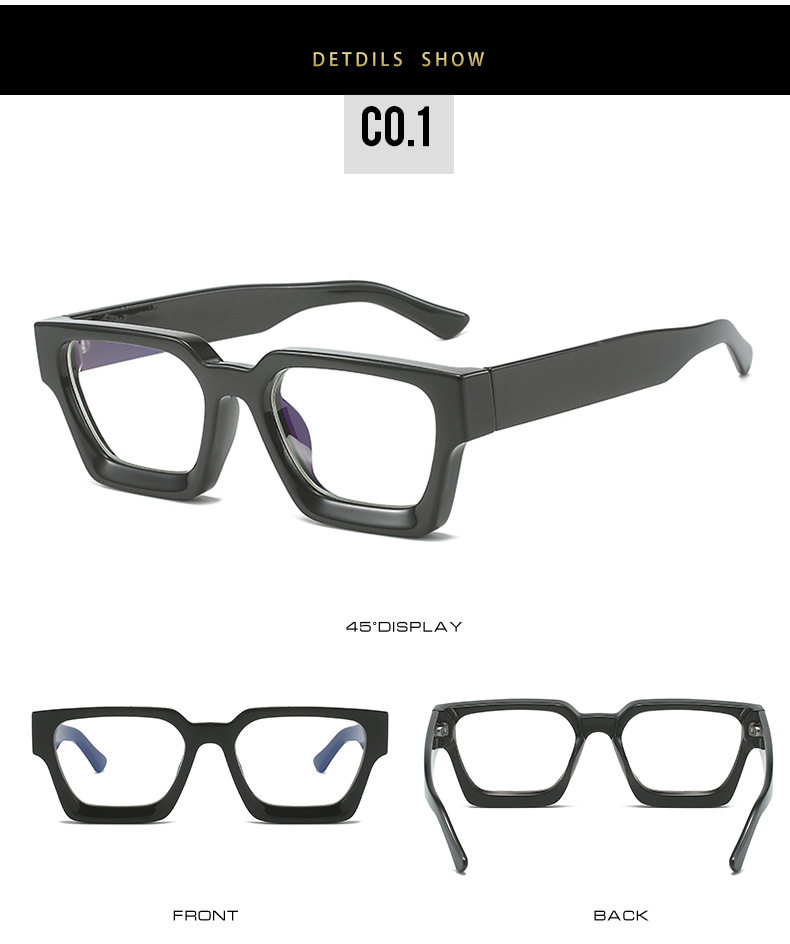 Cool square frame thick edge glasses frame European and American fashion ins glasses cross-border retro fashion Anti-blue light plain glasses