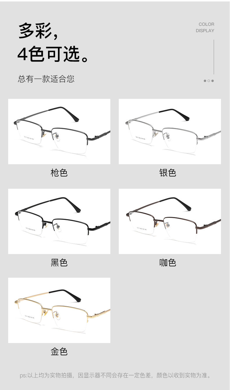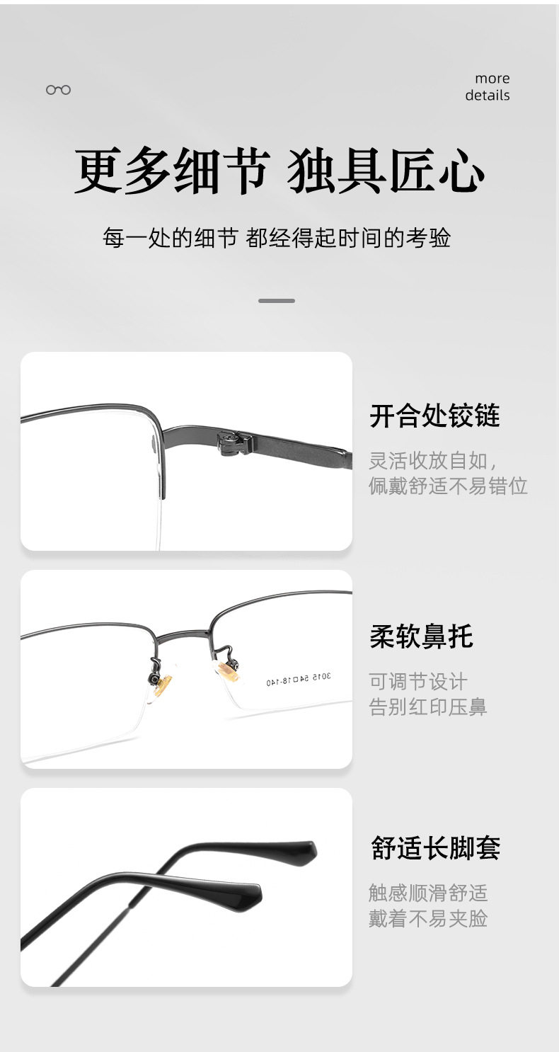 Danyang Glasses 3015JY High-bounce Leg Frame Men's Business Half-rimmed Glasses Frame Ultra Light Memory Titanium Glasses Frame New