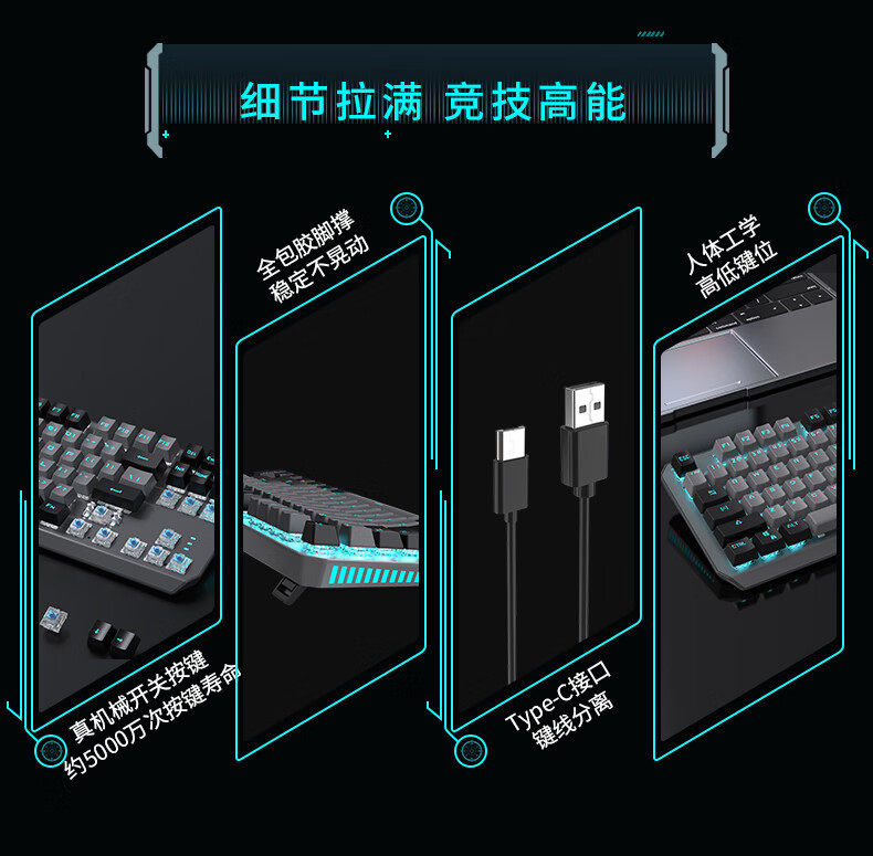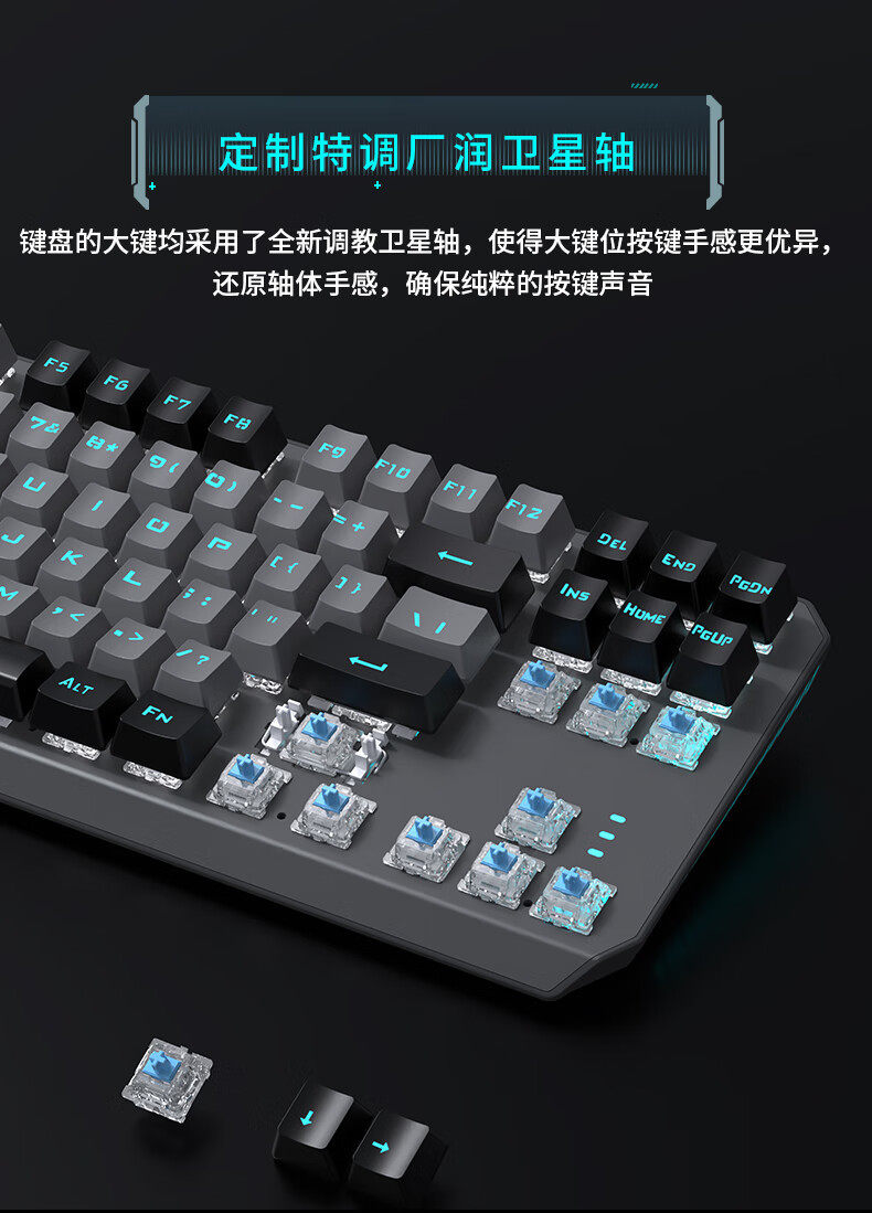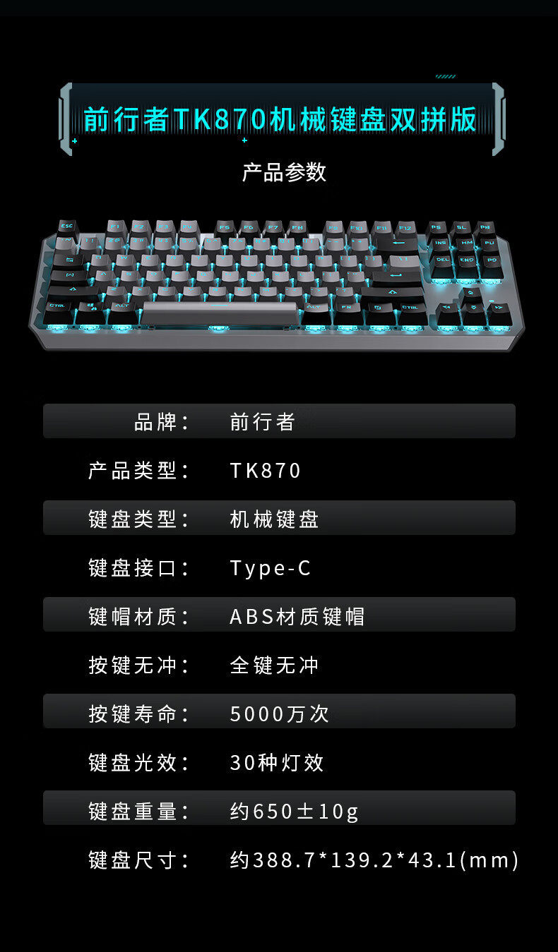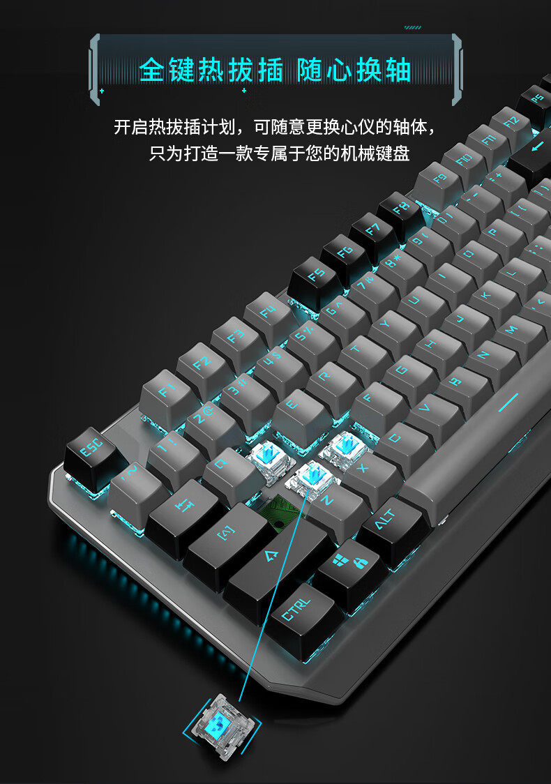 Forerunner TK870 mechanical keyboard 87 keyboard mouse suit black and gray double satellite axis game office general