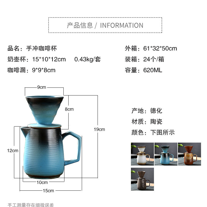 | Color | Coffee filter funnel-White,Coffee filter funnel-Blue,Coffee filter funnel-rust,Coffee filter funnel-earthy,Coffee filter pot-White,Coffee filter pot-Blue,Coffee filter pot-rust,Coffee filter pot-earthy yellow,Coffee filter pot + funnel-White,Coffee filter pot + funnel blue,Coffee filter pot + funnel-rust,Coffee filter pot + funnel-yellow |