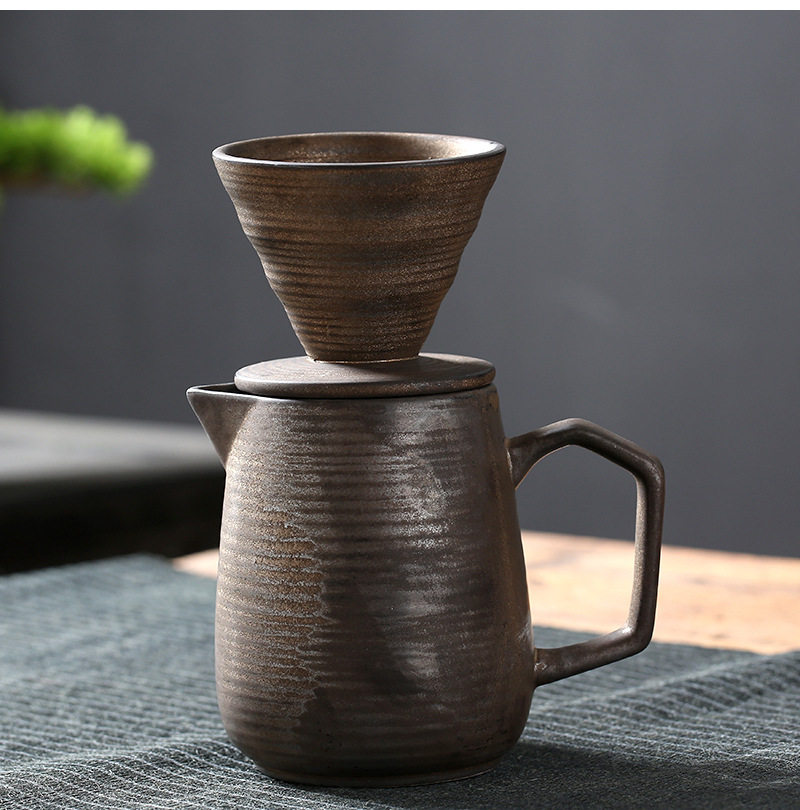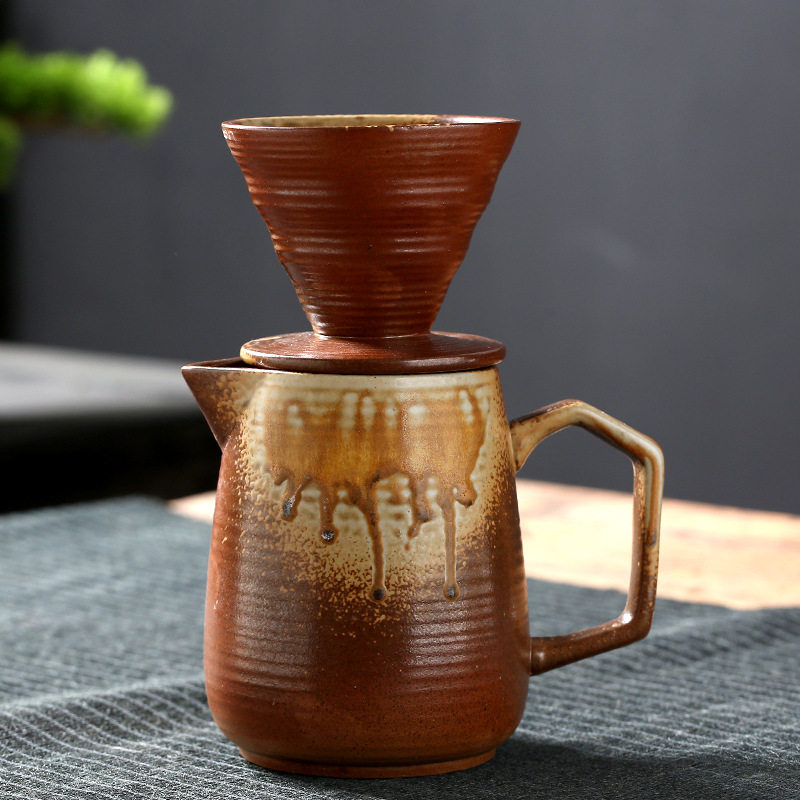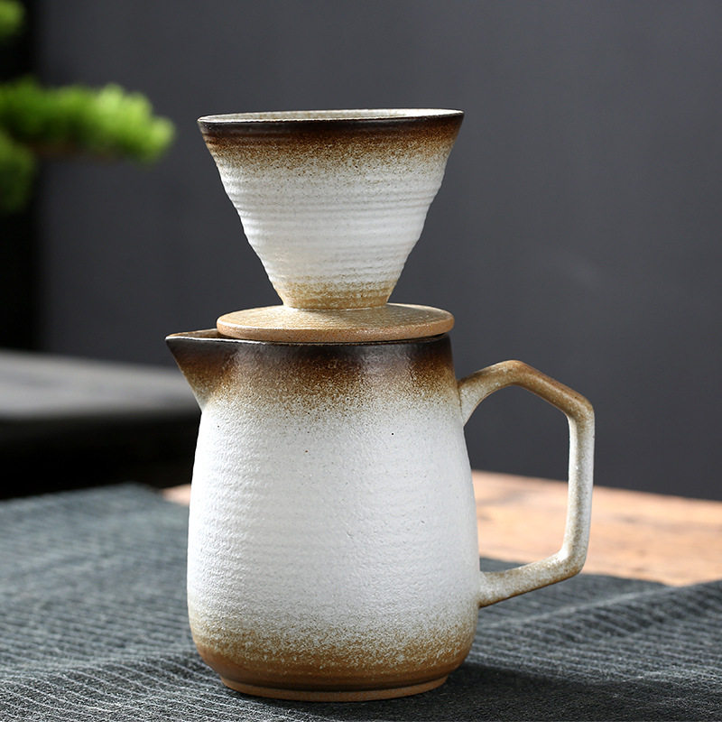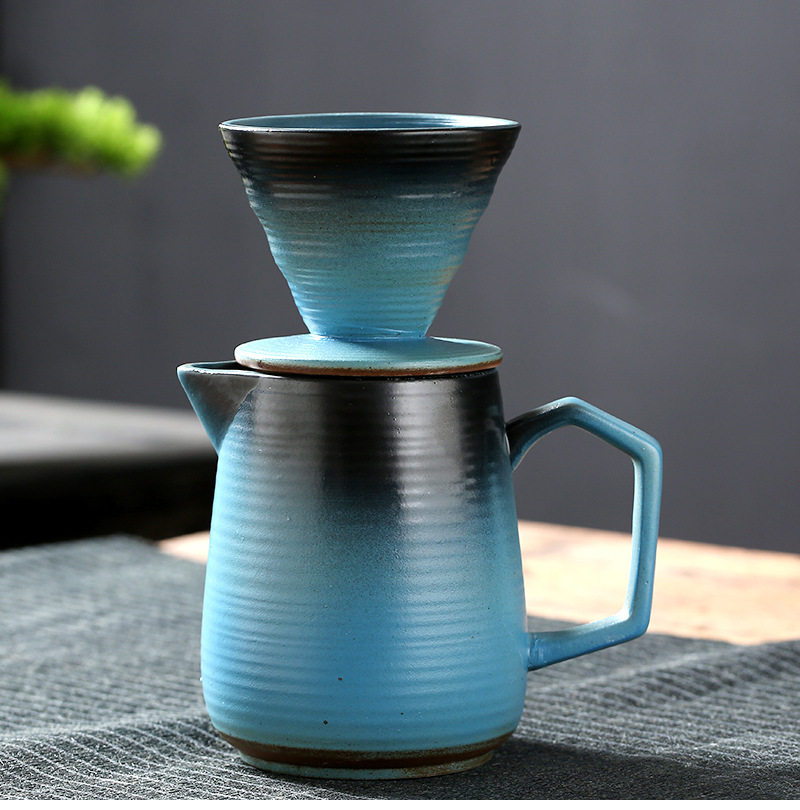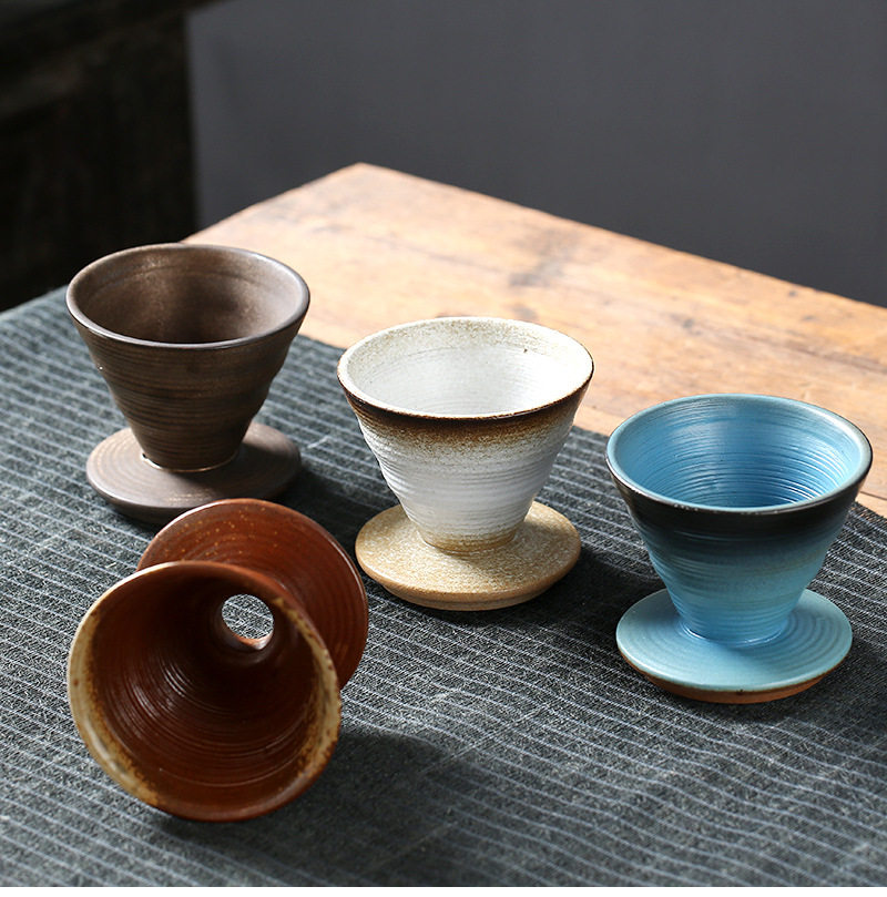 Ceramic filter bowl Filter stoneware kiln tapered spiral pattern funnel filter drip hand coffee set