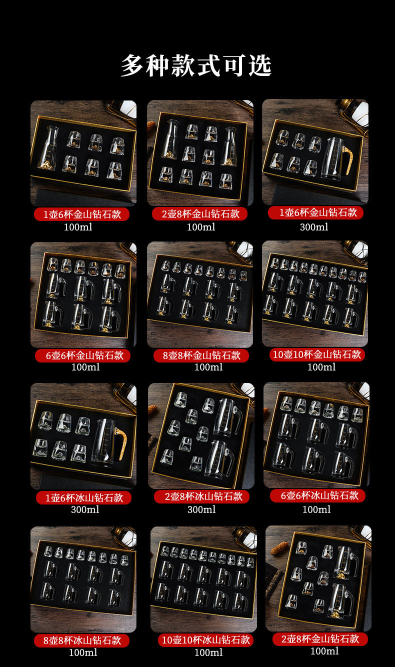 | Color | 1 pot 2 cups gold foil [gift box]],1 pot 2 cups Jinshan style [gift box]],1 pot of 6 cups gold foil [gift box]],1 Pot 6 cups Jinshan style [gift box]],6 pots 6 cups gold foil [gift box]],6 pots and 6 cups Jinshan style [gift box]],1 Pot 6 cups Jinshan diamond 2 300ml [gift box]],2 pots 8 cups Jinshan diamond 2 300ml [gift box]],6 pots 6 cups Jinshan diamond 2 100ml [gift box]],8 pots 8 cups Jinshan diamond 2 100ml [gift box]],10 pots 10 cups Jinshan diamond 2 100ml [gift box]],6 pots 6 cups iceberg diamond 2 100ml [gift box]],8 pots 8 cups iceberg diamond 2 100ml [gift box]] |