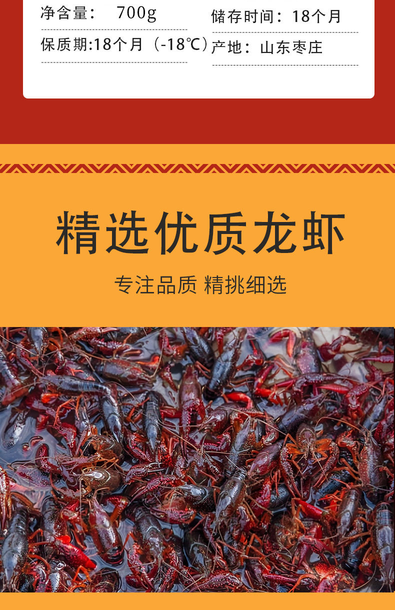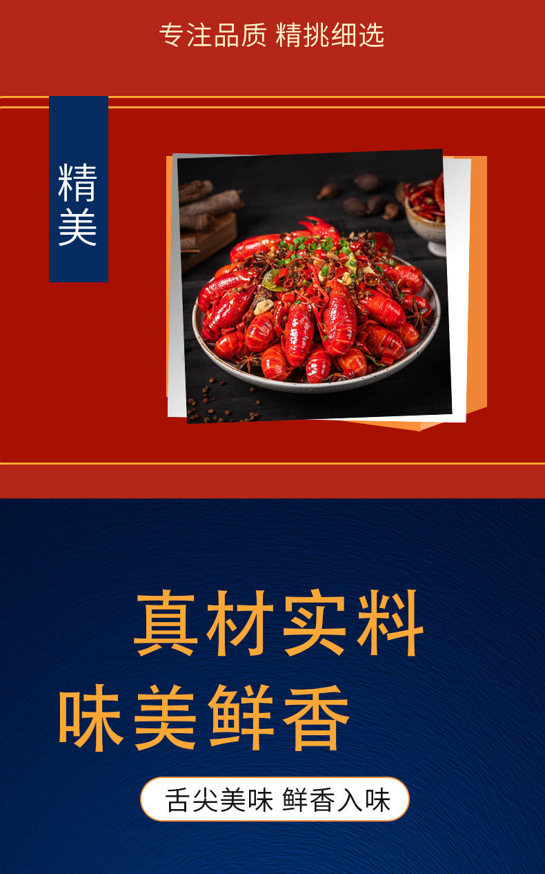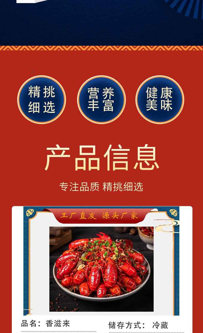 | Raw materials and ingredients | Crayfish, vegetable oil, chili, spices, sichuan peppercorns, edible salt, white sugar, monosodium glutamate |