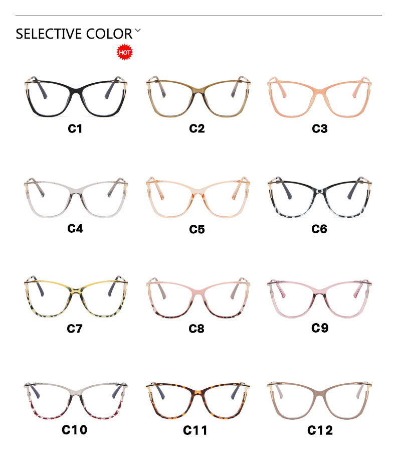 | Frame color | Bright Black,Olive green,Light brown,Light gray,Champagne,Black bean flower,Soybean flower,Upper caramel and lower bean flower,Transparent Purple,Upper Gray and lower bean flower,Bean flower,Face Gray |
