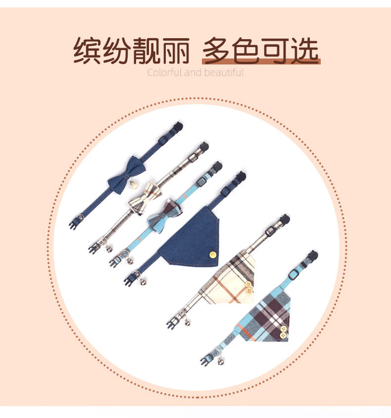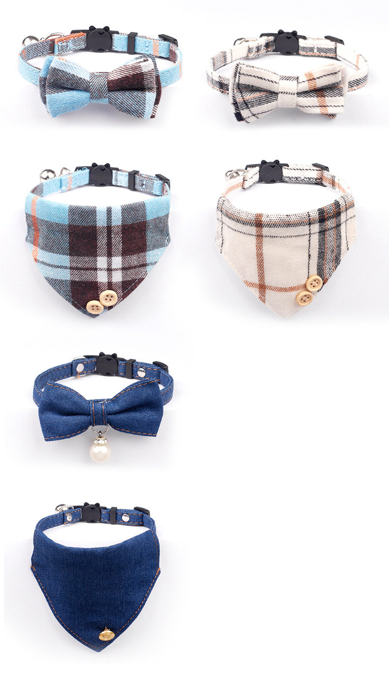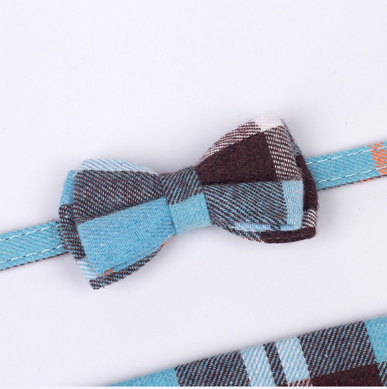 Cross-border new pet collar plaid fabric collar bow saliva towel set factory spot wholesale
