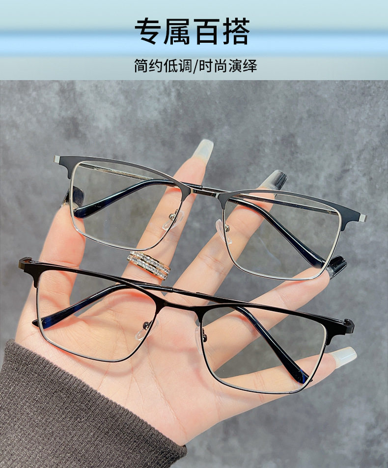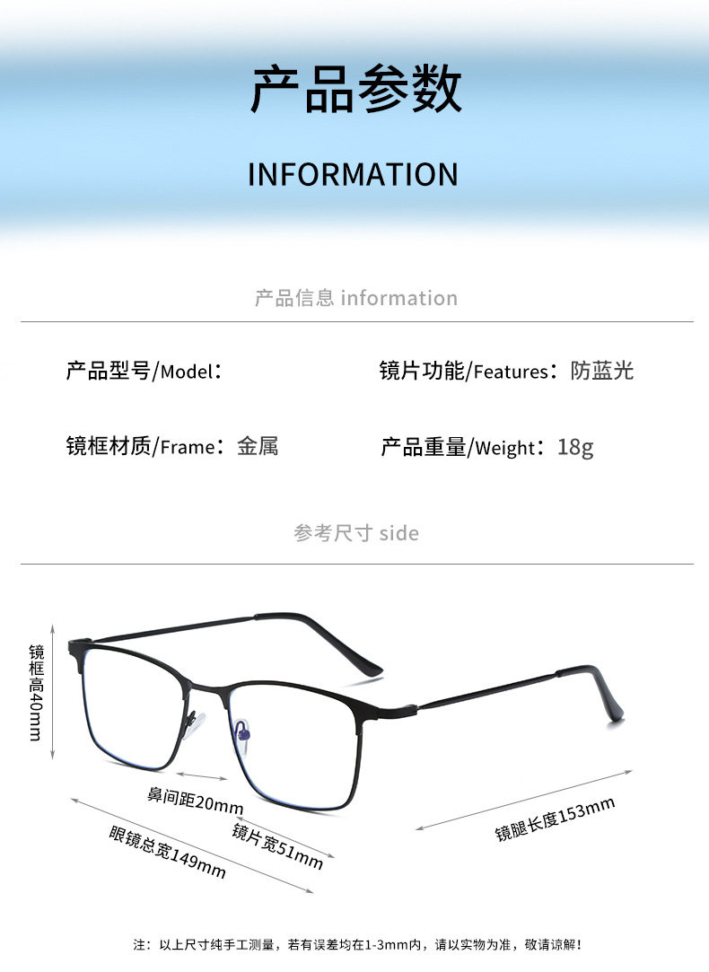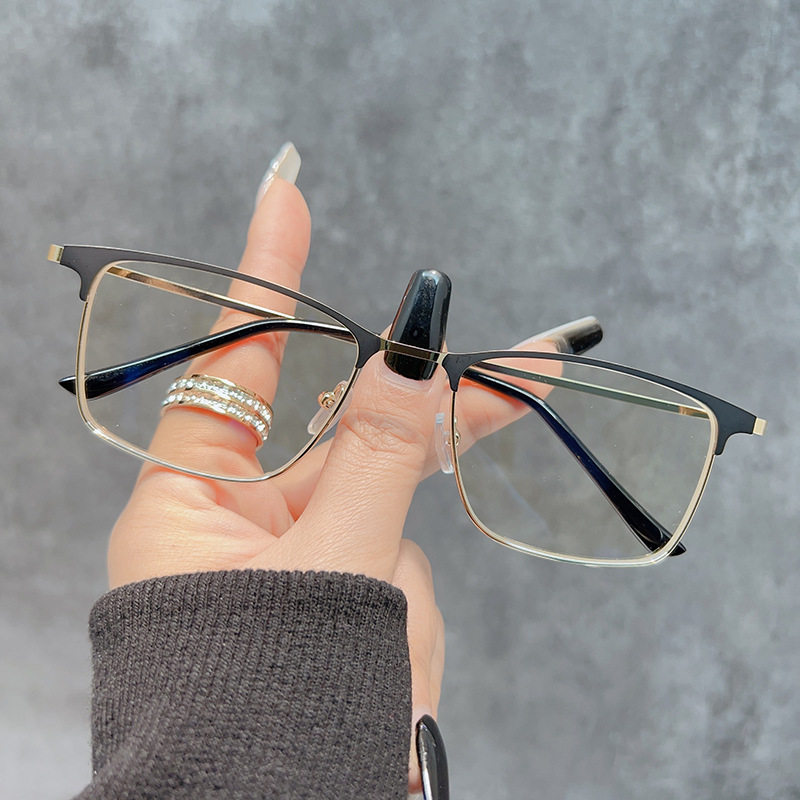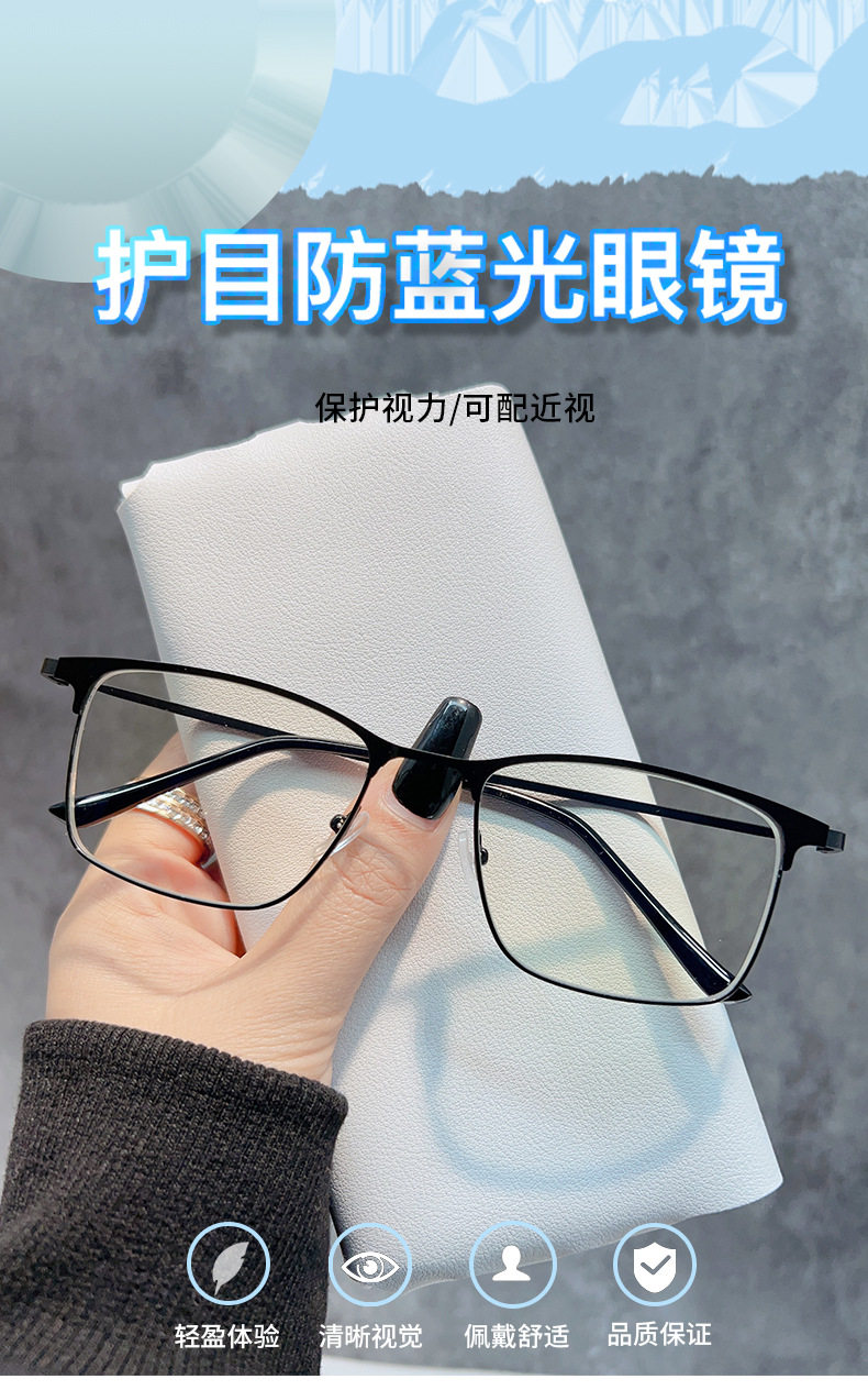 Square anti-blue light radiation glasses men's myopia with degree can be equipped with Korean tide eyebrow line half frame technology Men's eye frame
