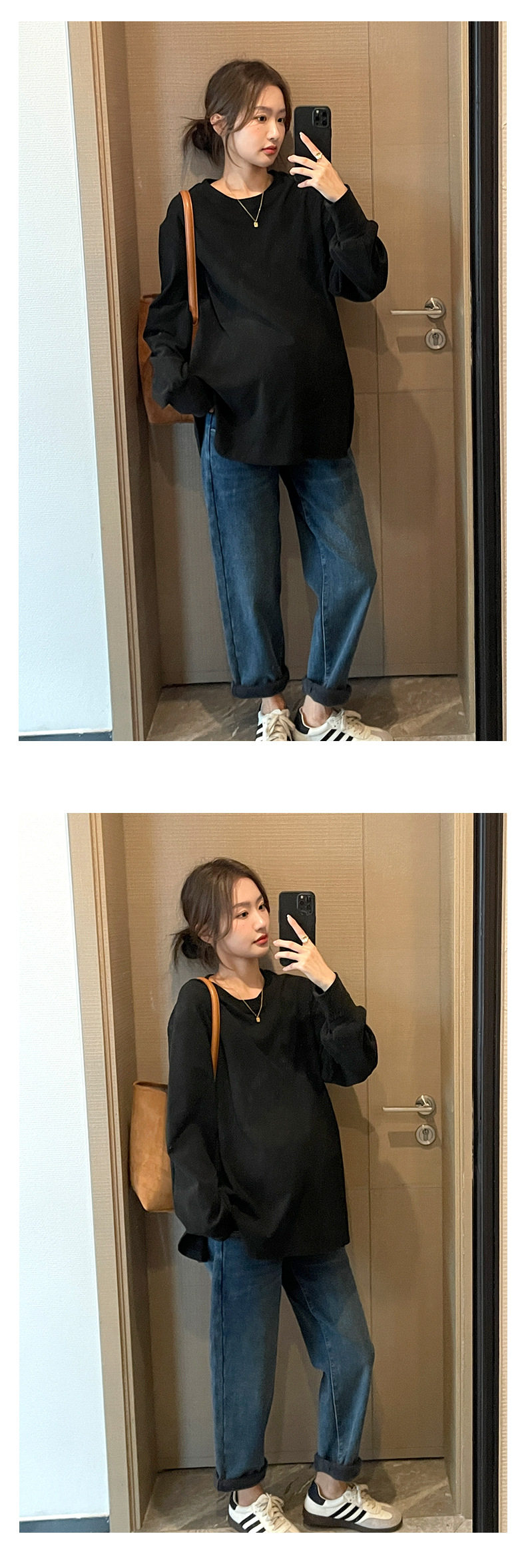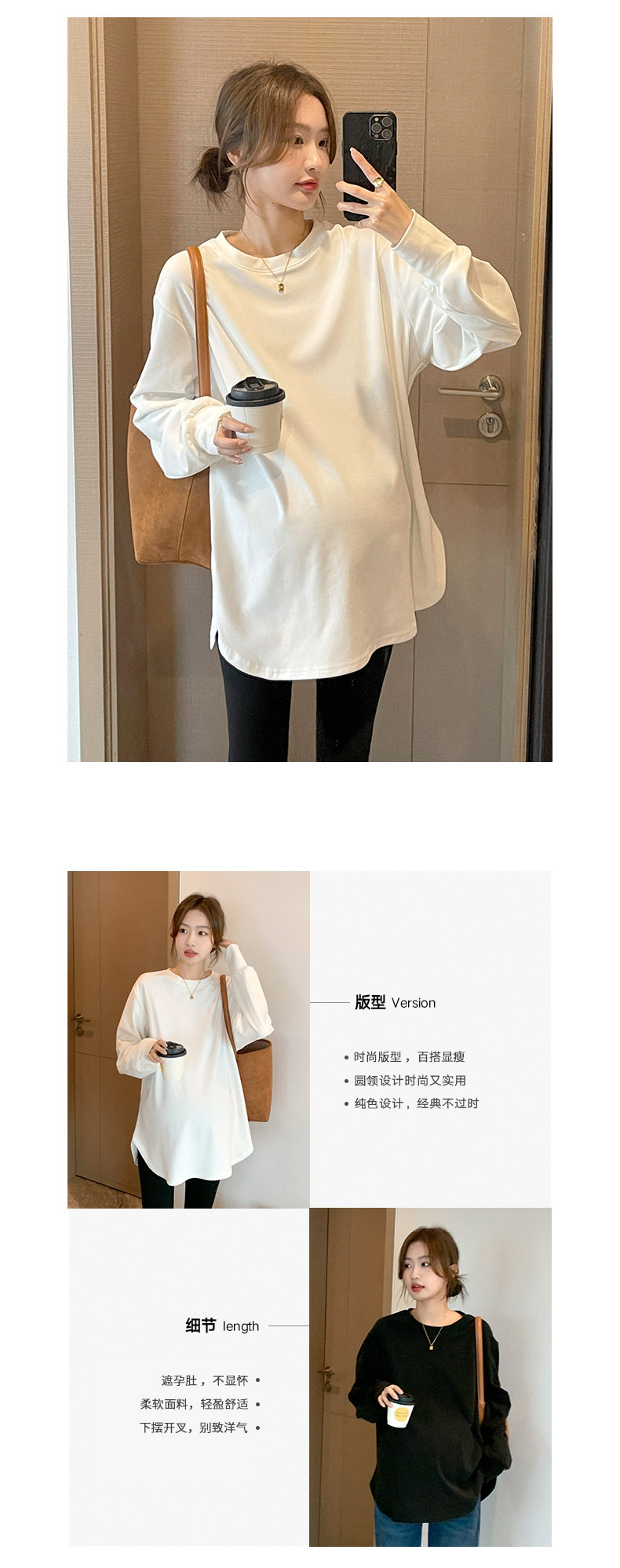 Spring New Maternity Clothes Korean Style Light Panel Fashionable Round Neck T-Shirt Loose Large Size Stylish Age-reducing Base Clothes Trendy Mom