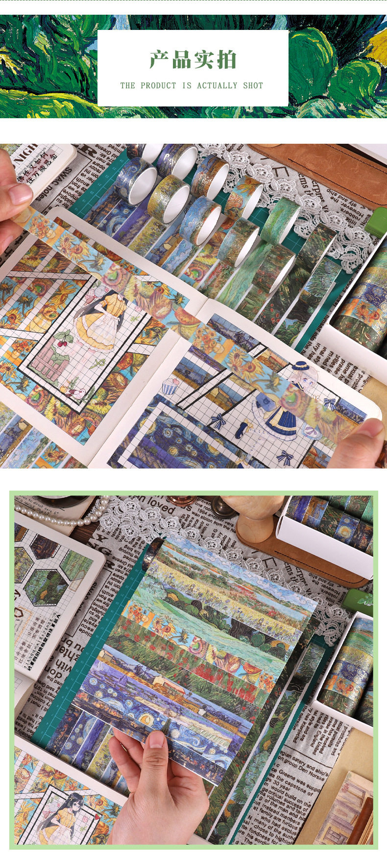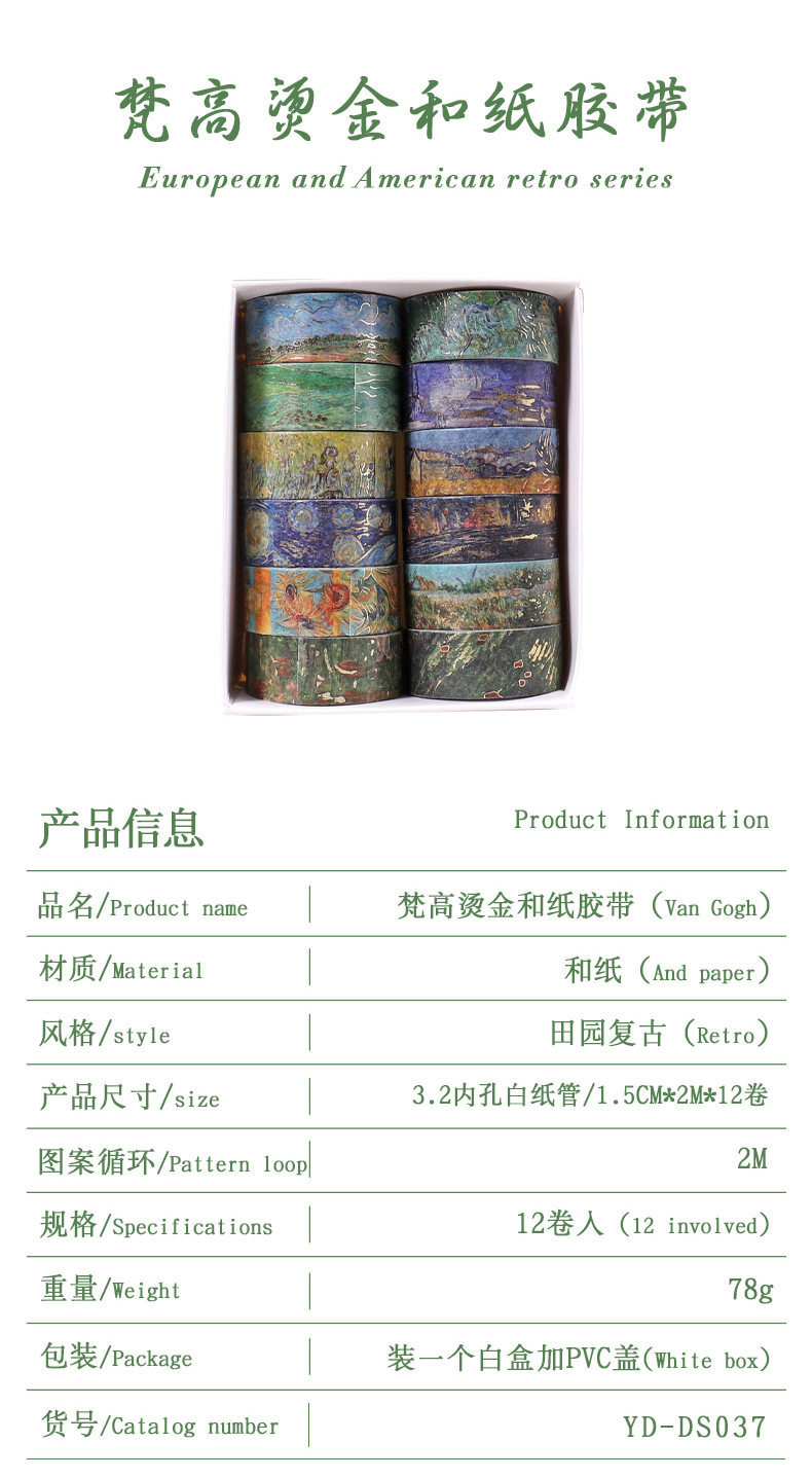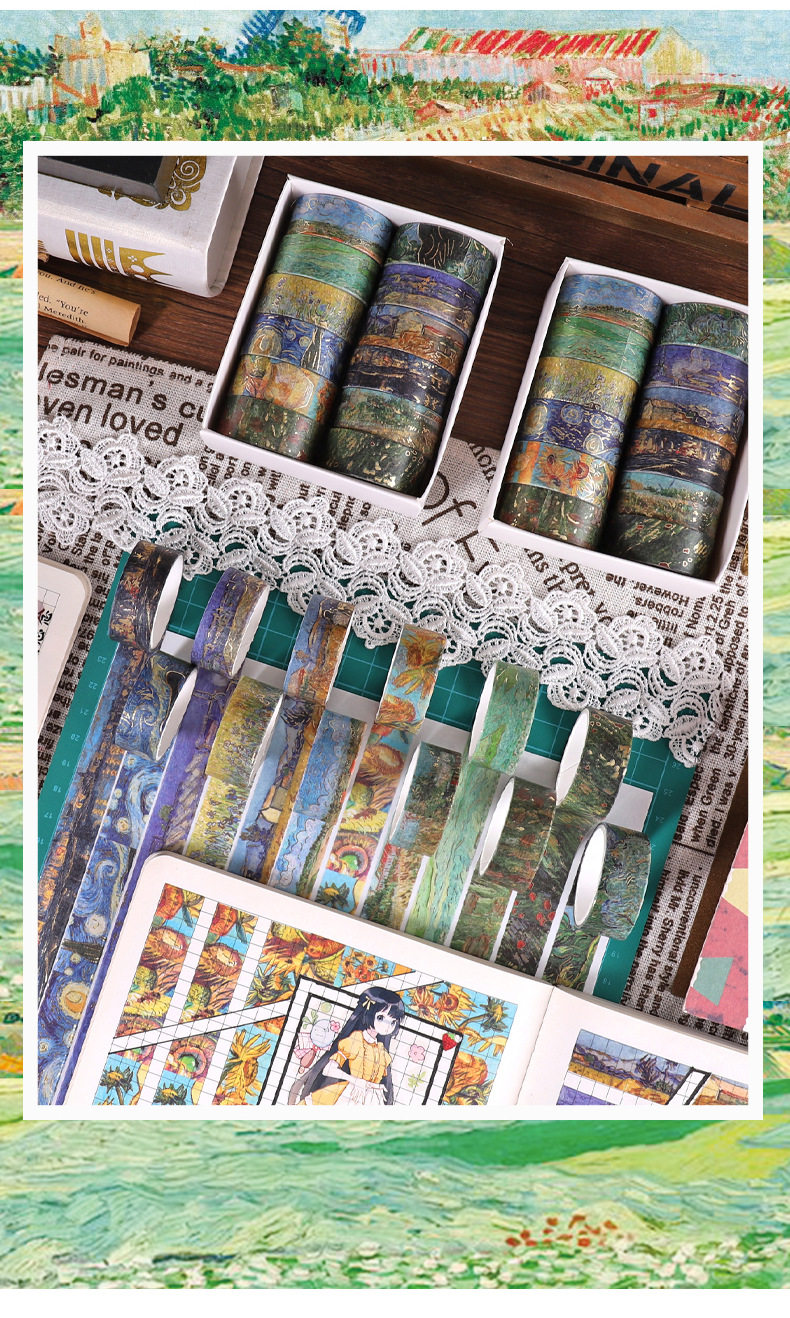 Yida Culture Cross-border Van Gogh Series Bronzing and Paper Tape DIY Decorative Hand Account Sticker Creative Life Small
