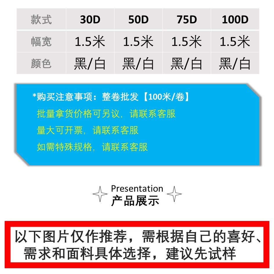 | Color | 30D white door width 1.5 m,30D black door width 1.5 m,50D white door width 1.5 m,50D black door width 1.5 m,75D white door width 1.5 m,75D black door width 1.5 m,100D white door width 1.5 m,100D black door width 1.5 m |