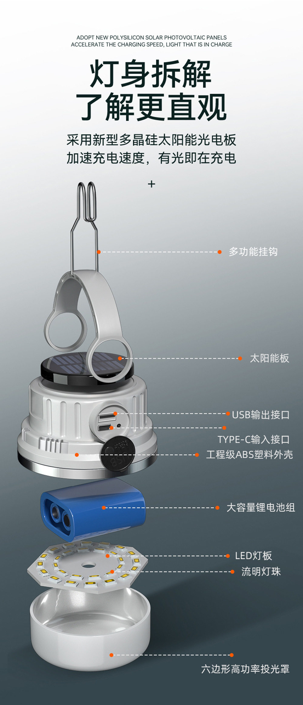 Cross-border Solar Camping Lamp Multifunctional Camping Tent Lamp Horse Lamp Rechargeable Portable Lamp Household Bulb Lamp