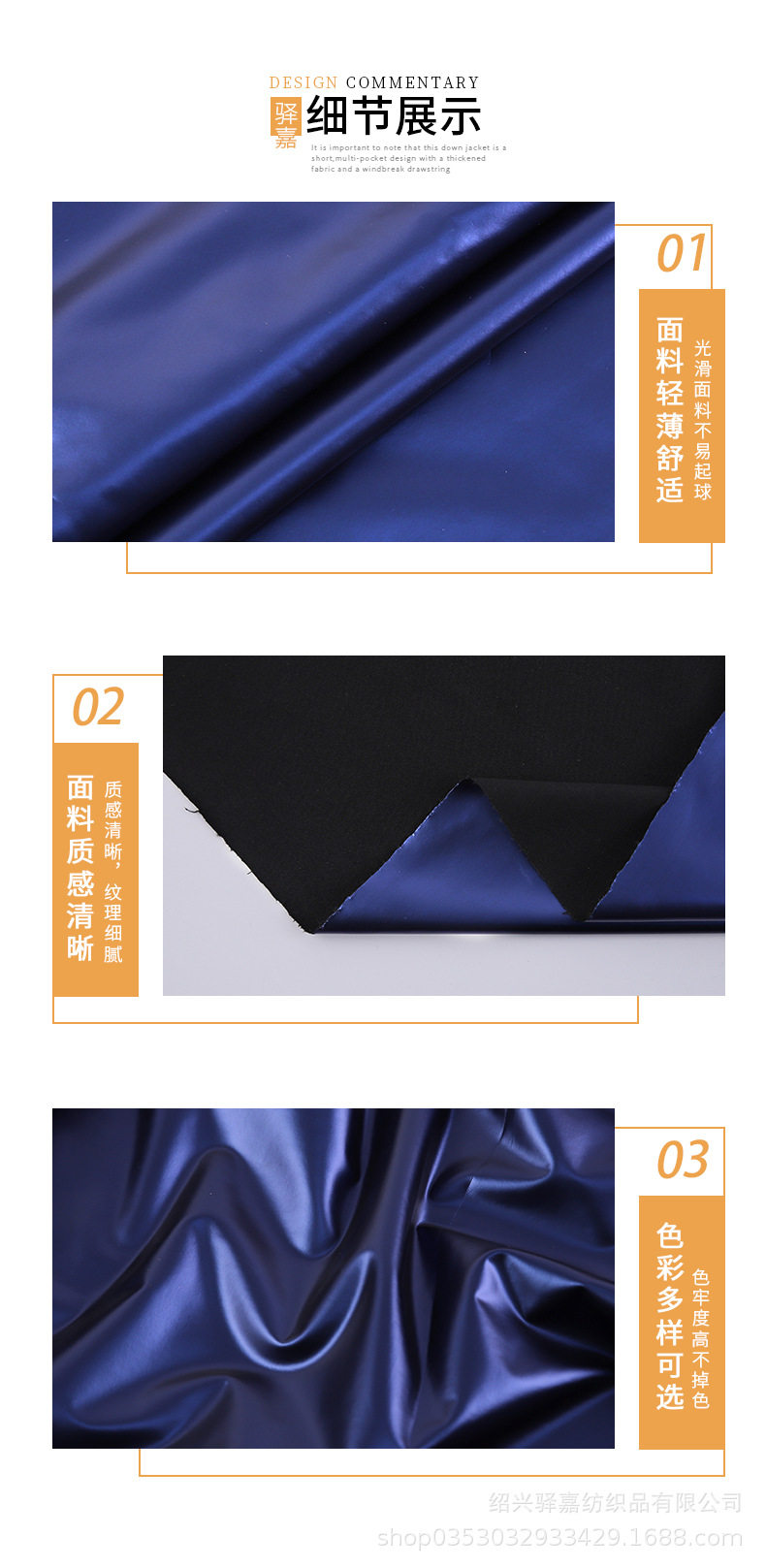| Alias | Down jacket pu leather fabric down jacket fabric polyester glossy fabric |
