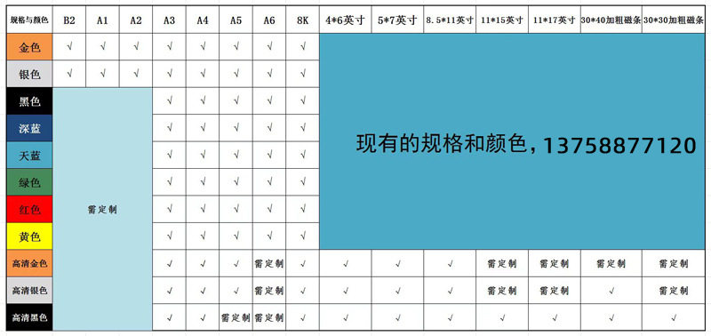 | Frame size | 8K Photo Frame 1 Pack,A3 photo frame 1 pack,A4 photo frame 1 this pack,A5 Photo Frame 1 Pack,A6 Photo Frame 1 Pack,8.5X11 inches,4*6 inch (7 inch 12.7*17.8CM),5*7 inch (8 inch 15.2*20.3CM),11X15 inches,11X17 inch,30X40cm Bold,A2 (medium) (inner frame 40*60),B2 (large) (inner frame 50*70),A1 (inner frame 60*80) |