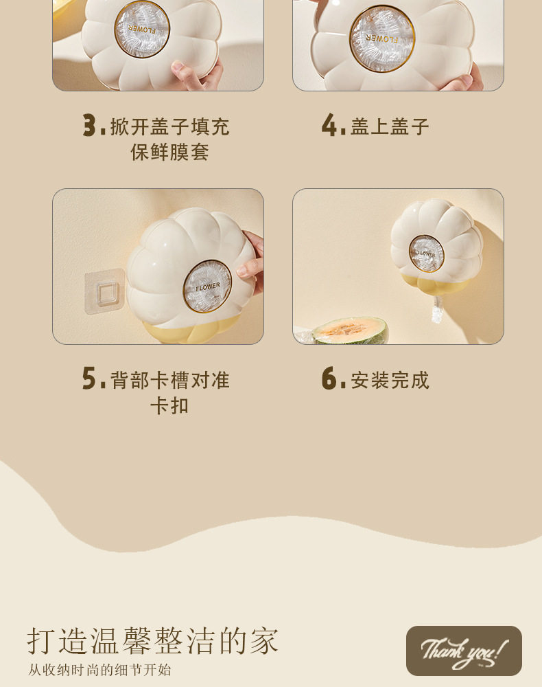 | Dimensions | Flower-shaped plastic wrap storage box |
