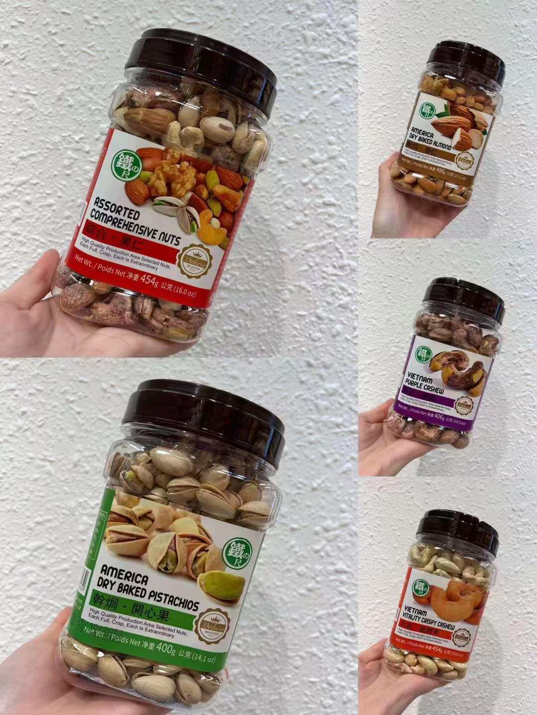 | Packaging specifications | 400g iron ruler pistachio,450g iron ruler comprehensive nuts,450g iron ruler vigorous crisp cashew nuts,486G iron ruler Almond,406g iron ruler purple Peel cashew nuts,418G iron ruler Hawaii fruit |