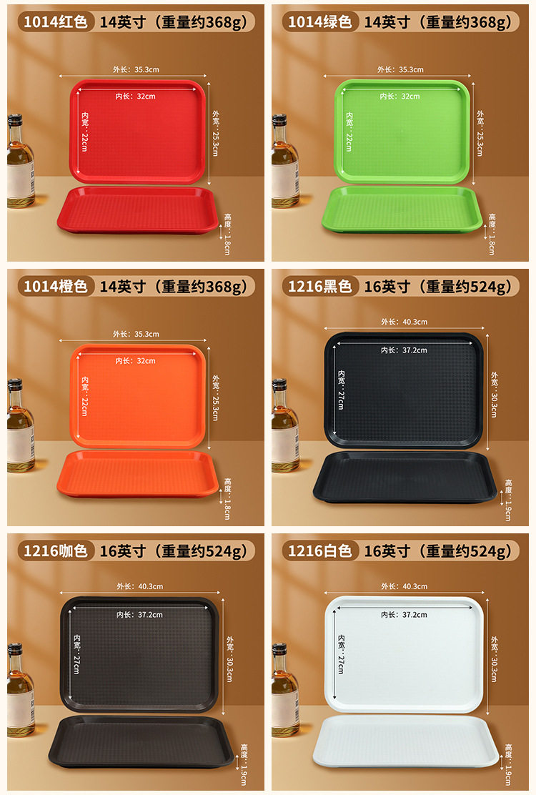 Commercial Tray Rectangular Burger Fast Food Restaurant Plate Restaurant Non-Slip Plastic Serving Plate Canteen Tray Wholesale