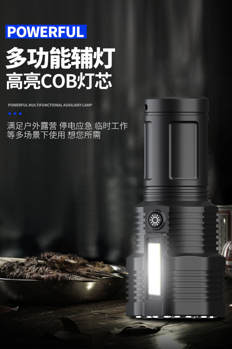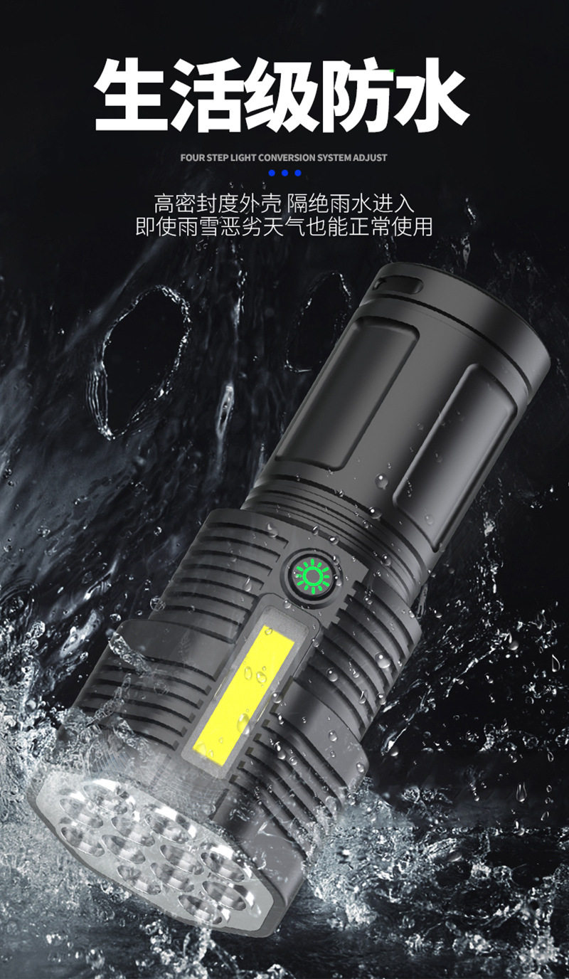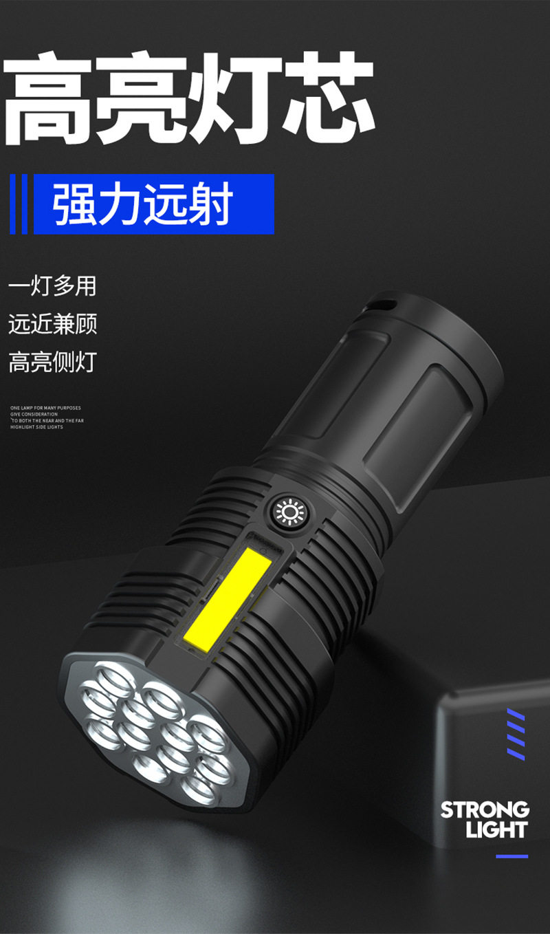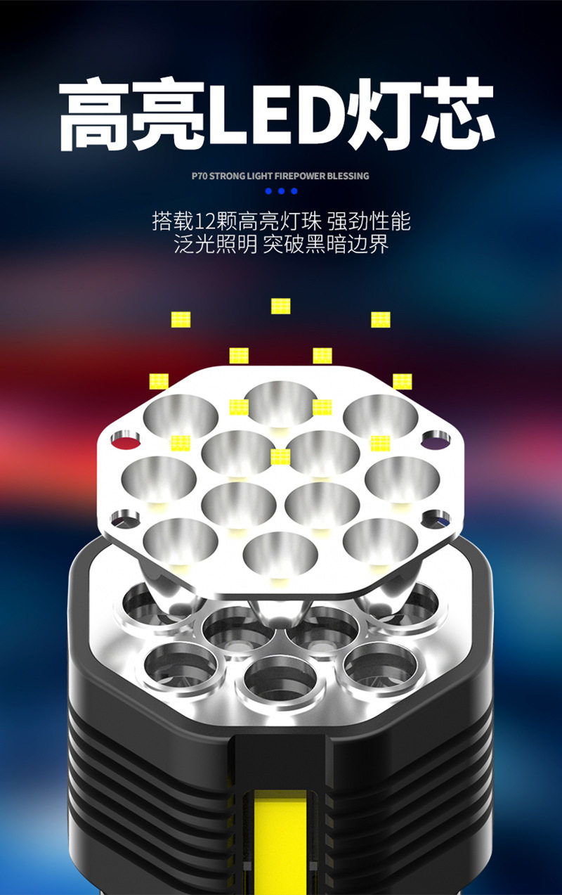 New 12Led Strong Light Flashlight Outdoor Cycling Lighting USB Rechargeable Cob Side Light Handheld Lighting