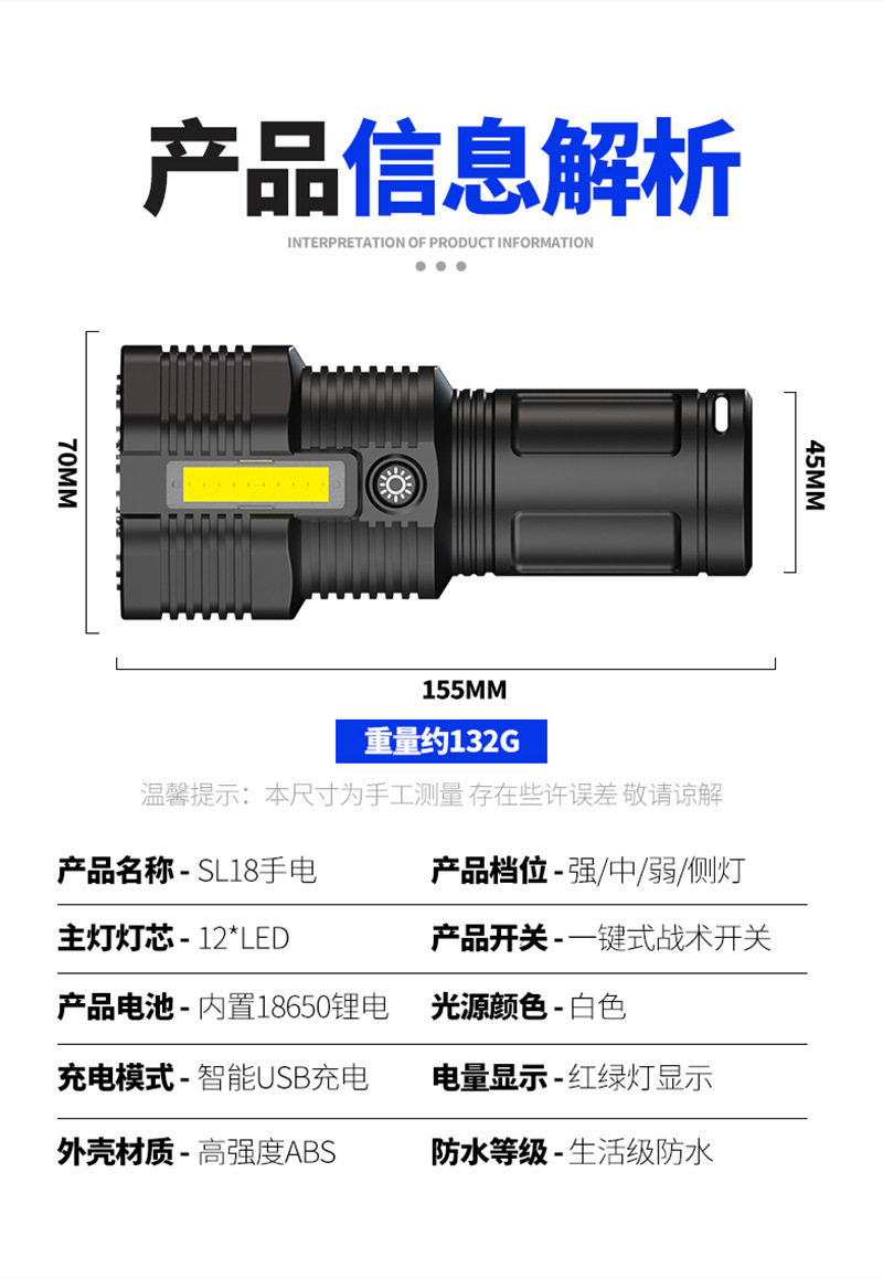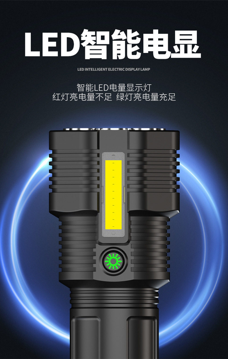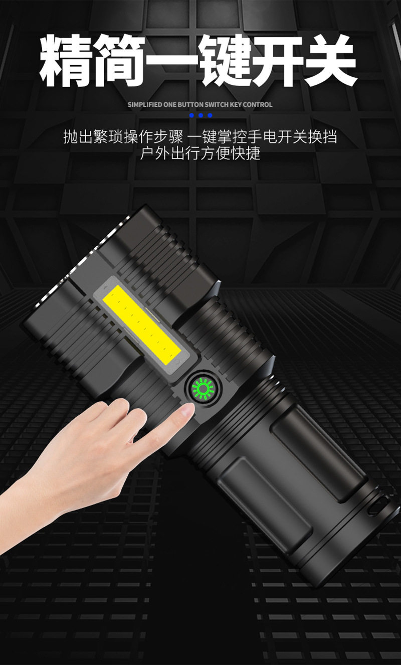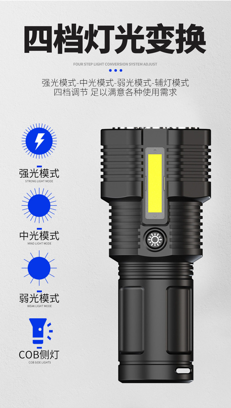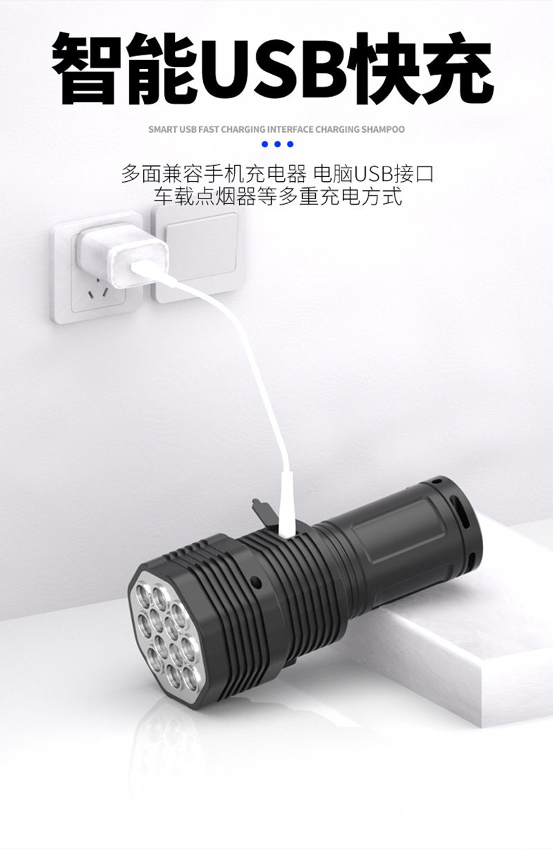New 12Led Strong Light Flashlight Outdoor Cycling Lighting USB Rechargeable Cob Side Light Handheld Lighting