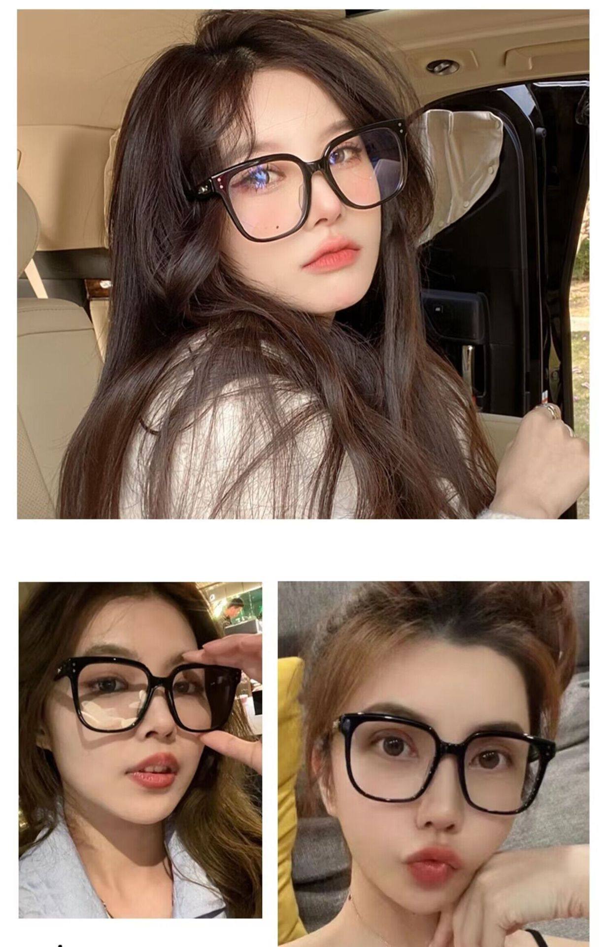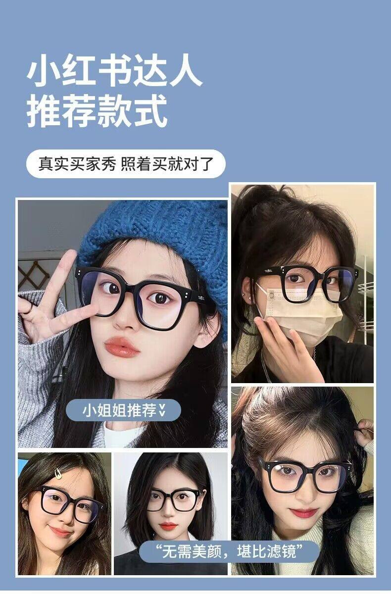 Fashionable Black-Framed Glasses for Women Can Be Equipped with Prescription Myopia Lenses Without Makeup, Anti-Blue Light Eye-Frame Frames for Big Faces
