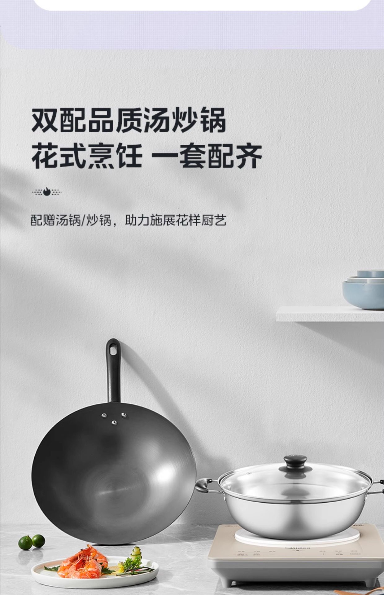 Packing list Induction cooker, 26cm chinoiserie soup pot, 30cm cast iron oxide wok, instructions