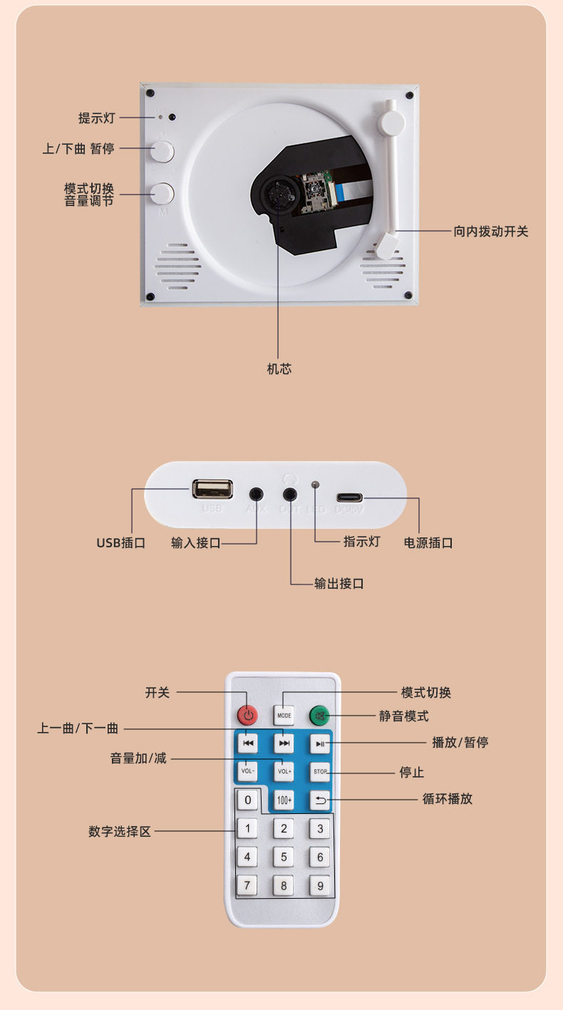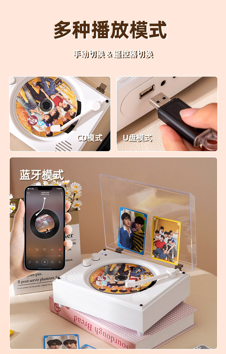 Spot Retro Cd Player Portable Wireless Bluetooth Record Album All-In-One Cd Player Factory Wholesale
