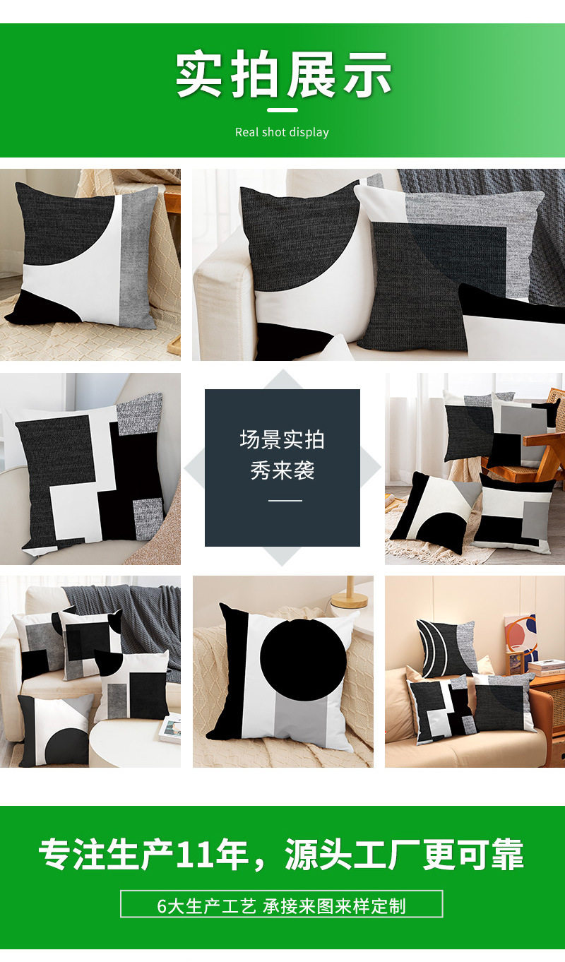 Amazon New Contrast Color Pillow Geometry Splicing Black Pillow Case Living Room Sofa Pillow Car Pillow Case