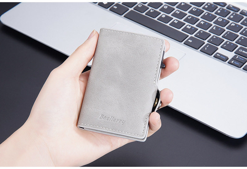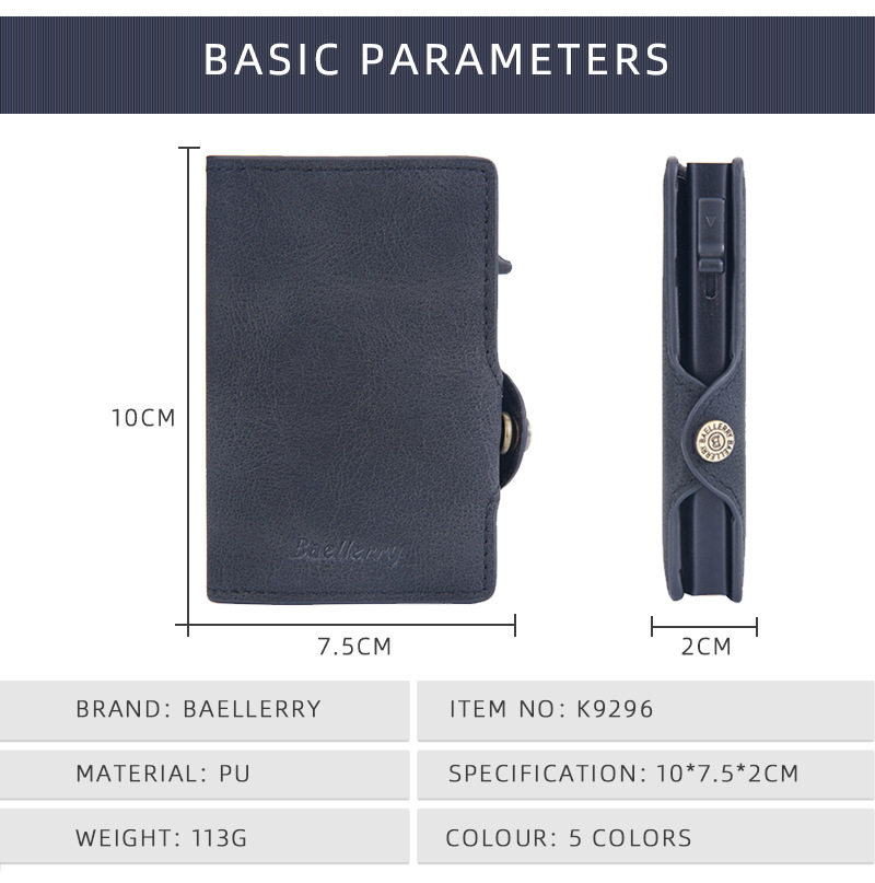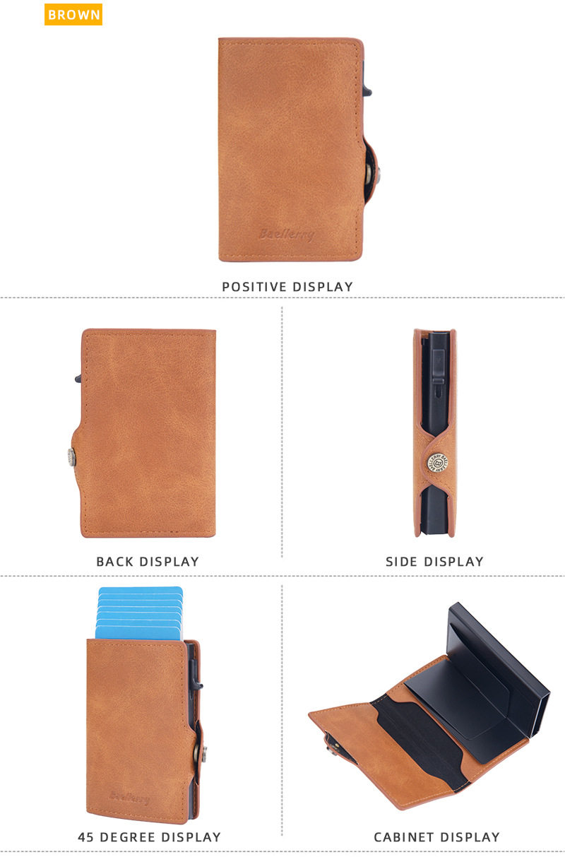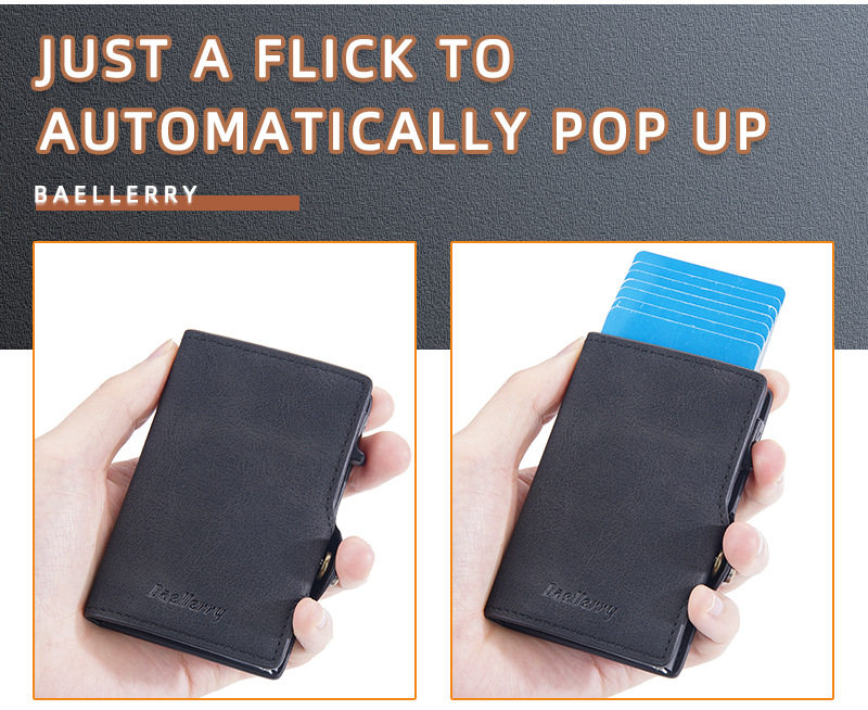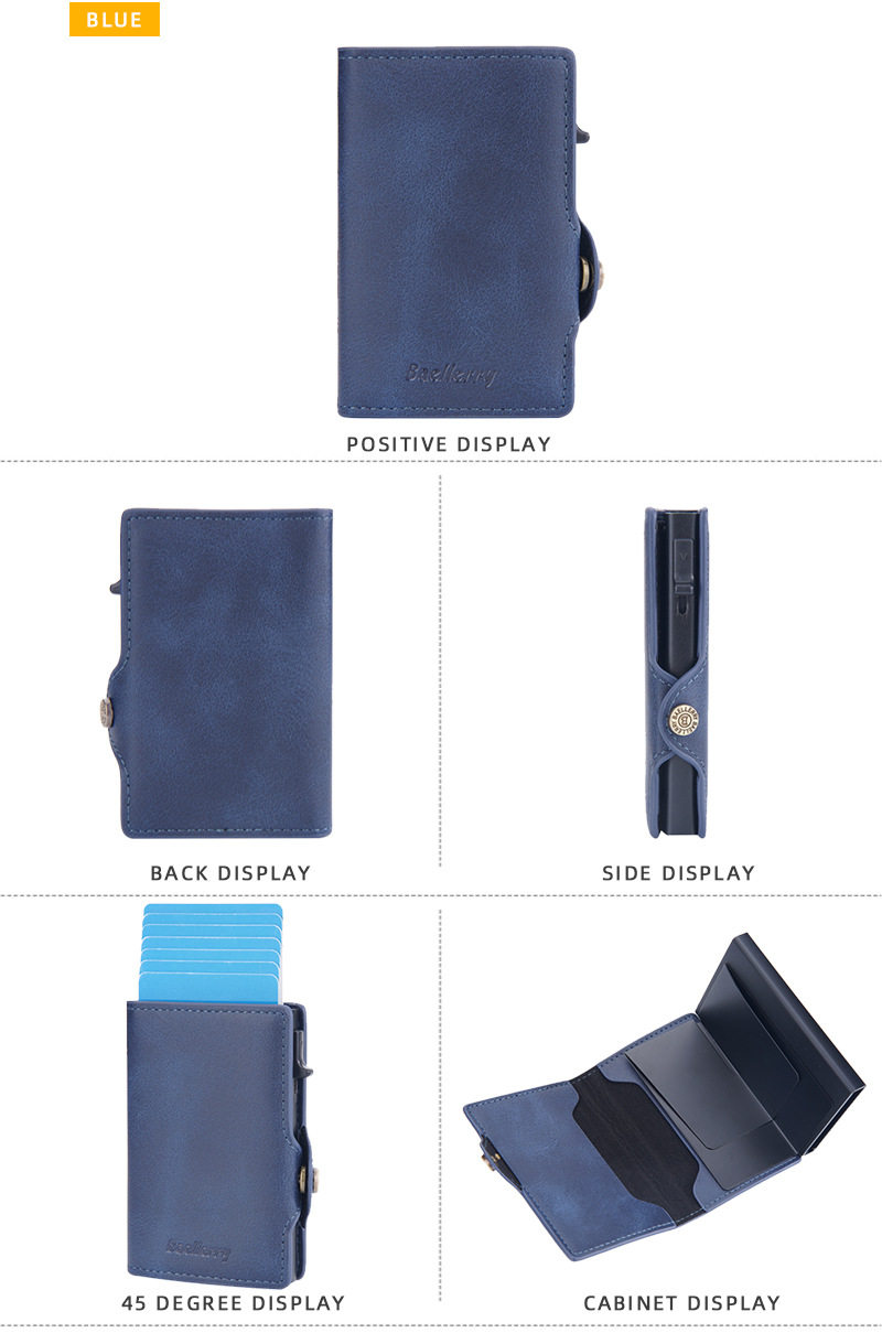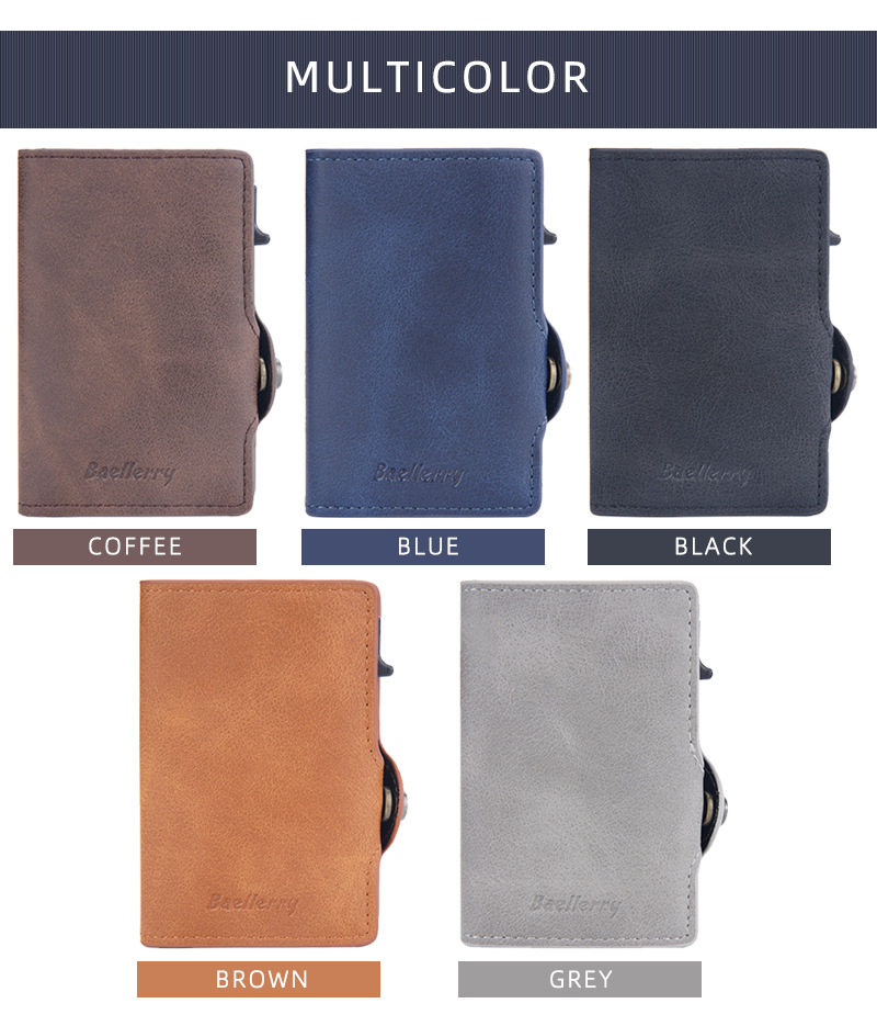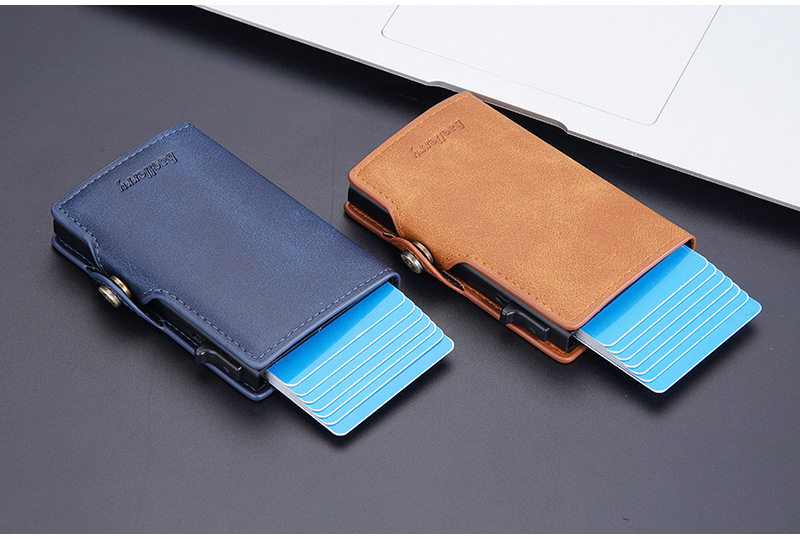 New Style Card Bag Men's Baellerry European and American Retro Side Push Card RFID Card Box Simple Buckle Anti-magnetic Card Case