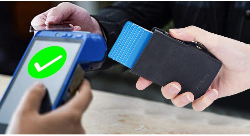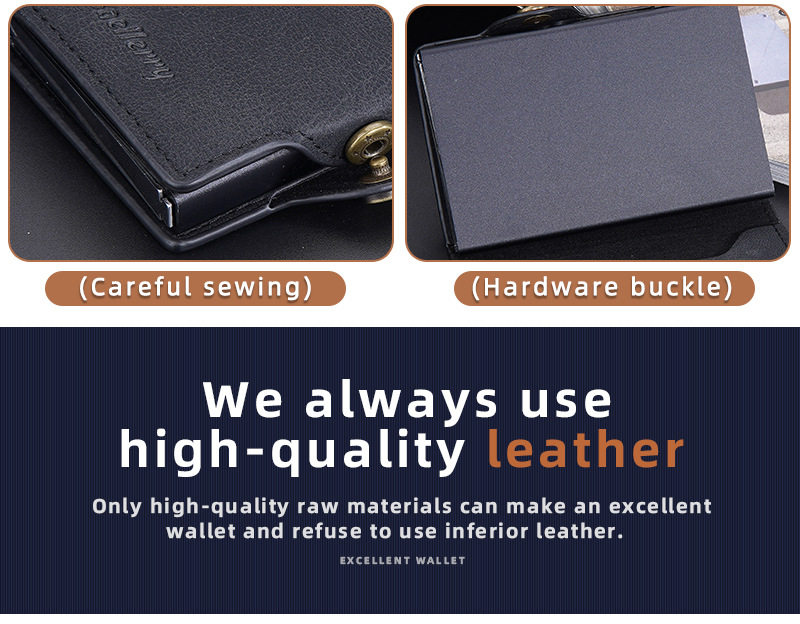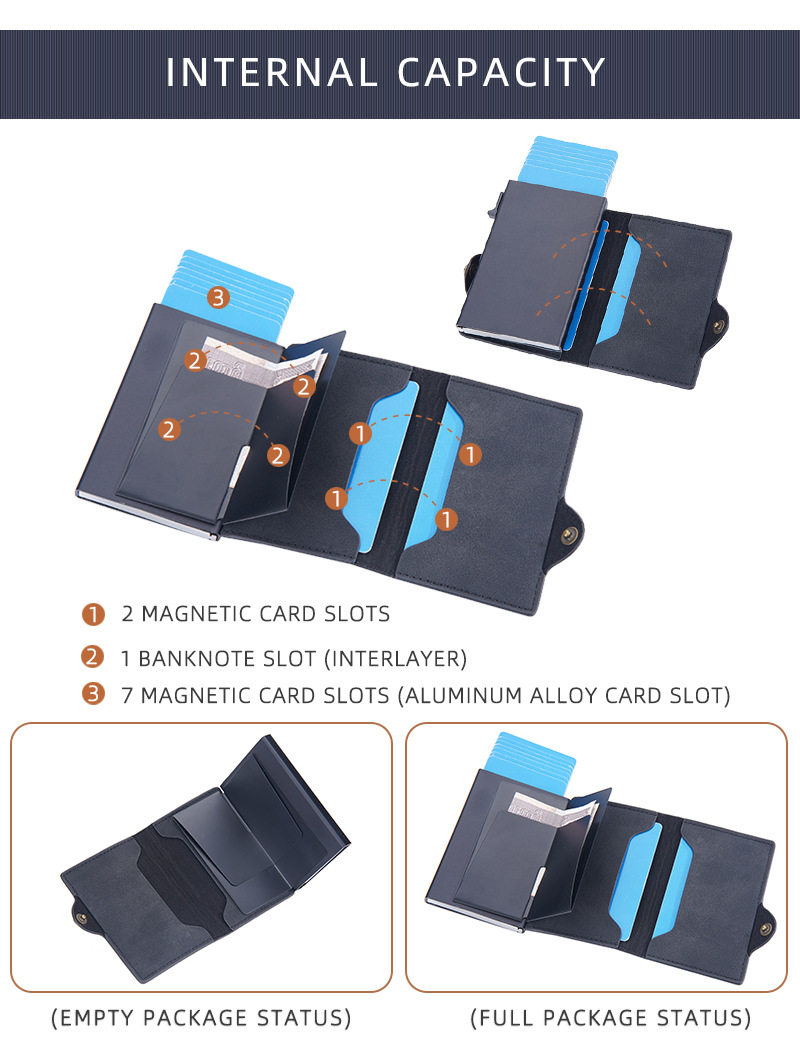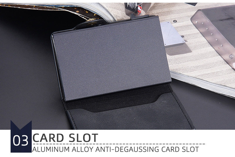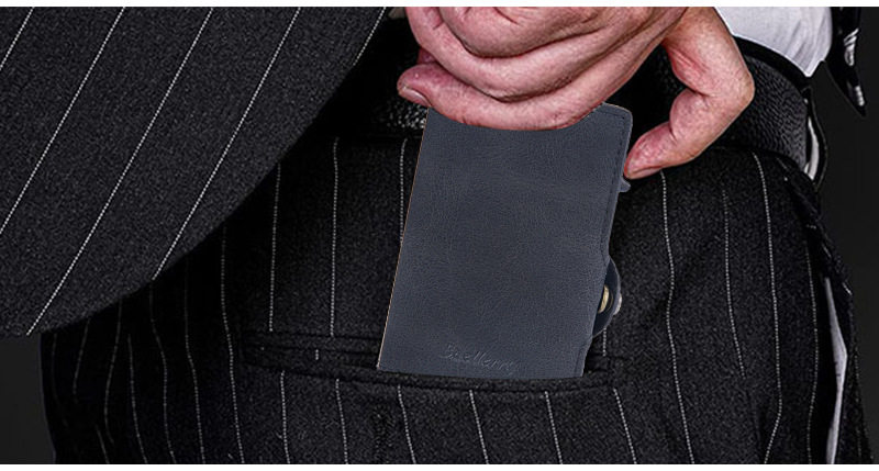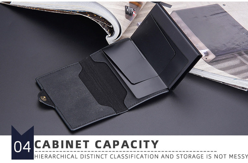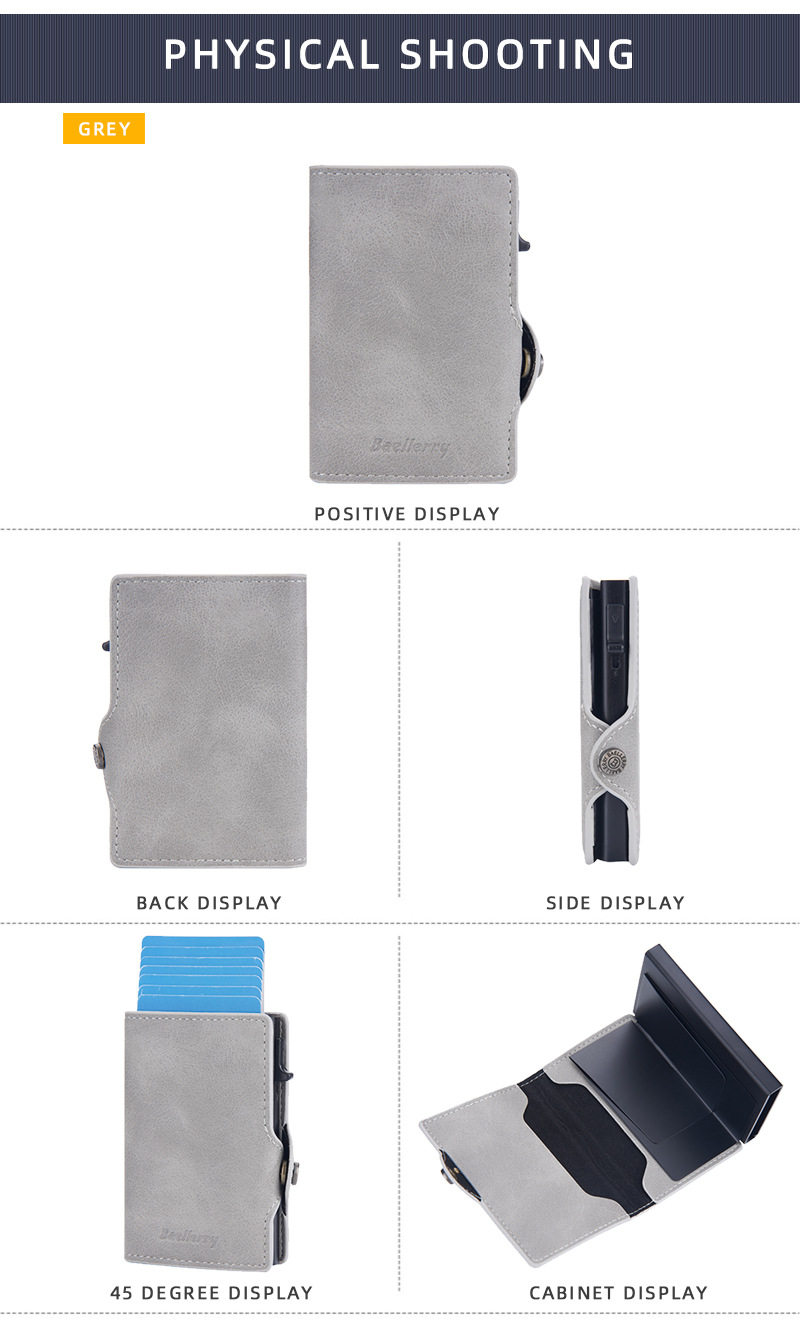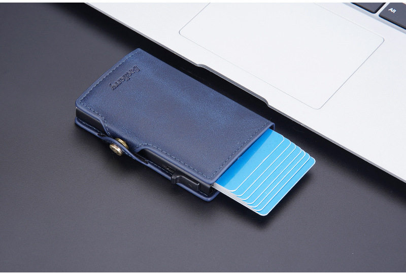 New Style Card Bag Men's Baellerry European and American Retro Side Push Card RFID Card Box Simple Buckle Anti-magnetic Card Case