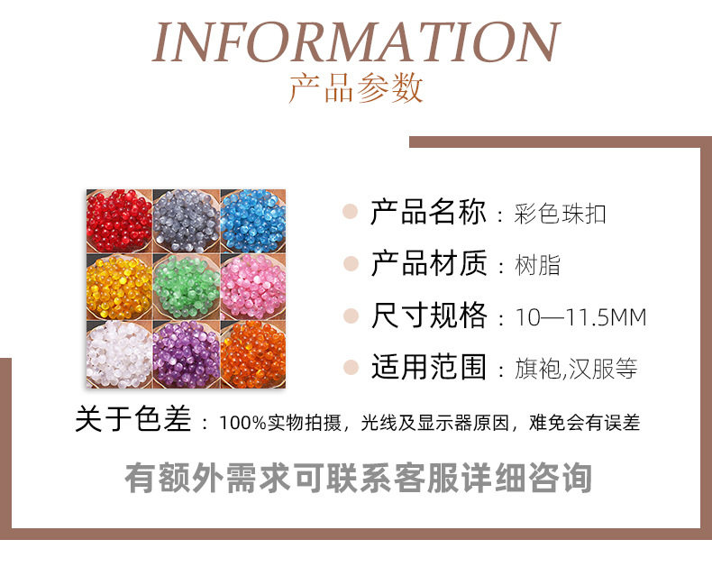 Plate buckle cheongsam button imitation jade beads Tang suit Hanfu decoration color pearl buckle round resin shirt button