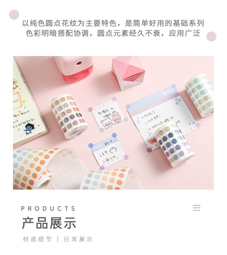 Morandi color basic solid color wave dot dot dot sticker tape ins Wind hand account and paper round dot sticker