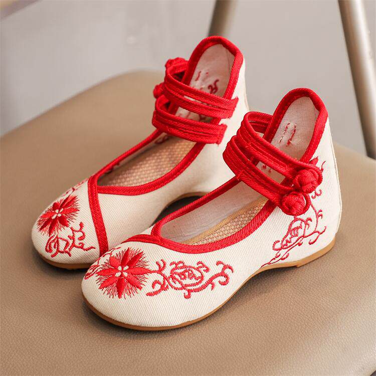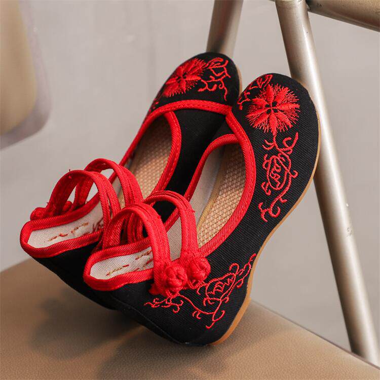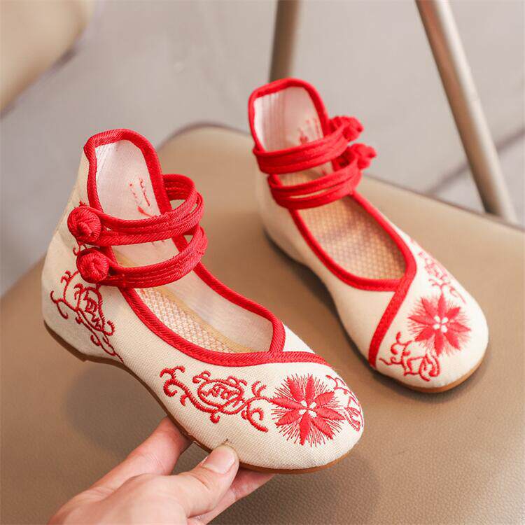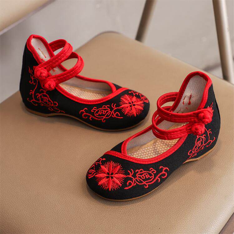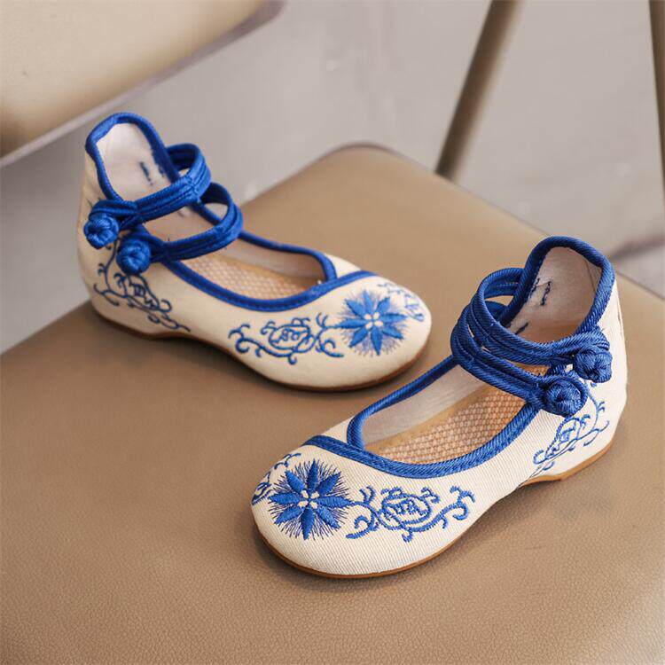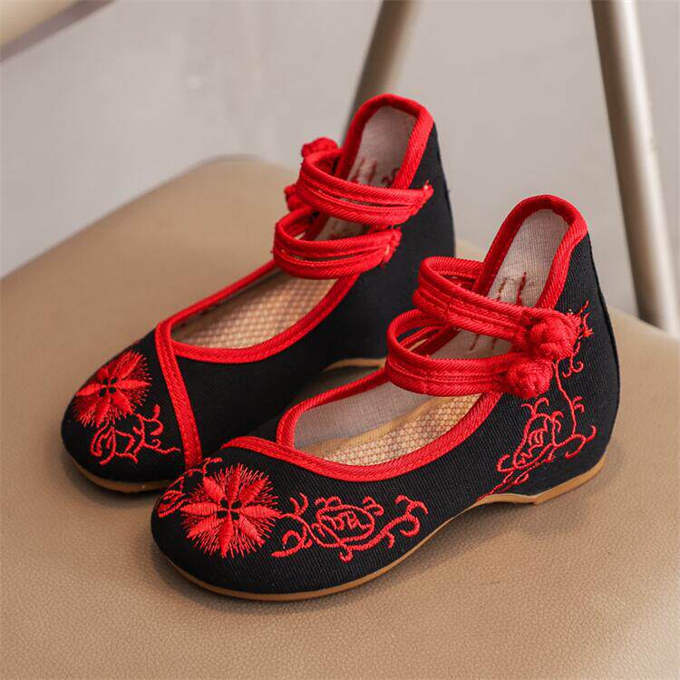 Children's Embroidered Shoes Girls' Hanfu Shoes 2023 New Chinese Style Round Toe Girl's Performance Soft-soled Ancient Dress Dance Shoes