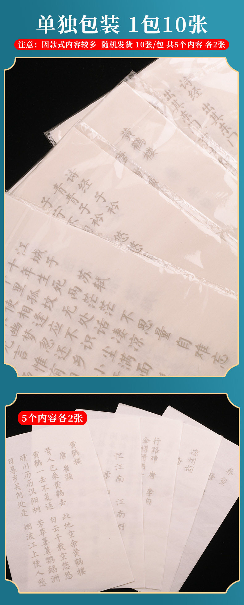 | Specifications | Ancient poetry in lower case copybook/10 bags/5 contents, 2 each/ |