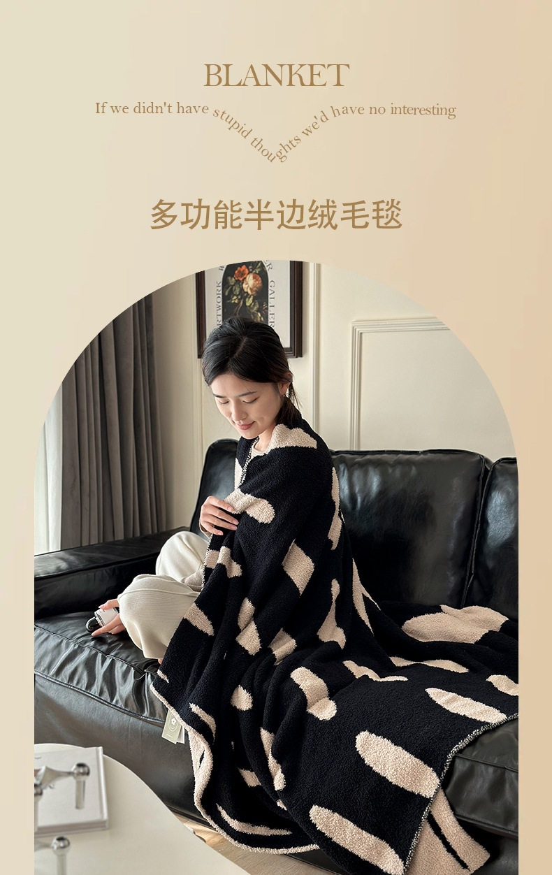 Half-side velvet blanket office sofa blanket black and white two-sided nap thickened blanket autumn and winter velvet blanket
