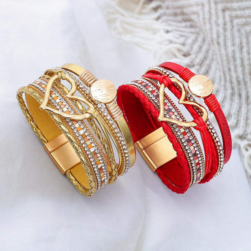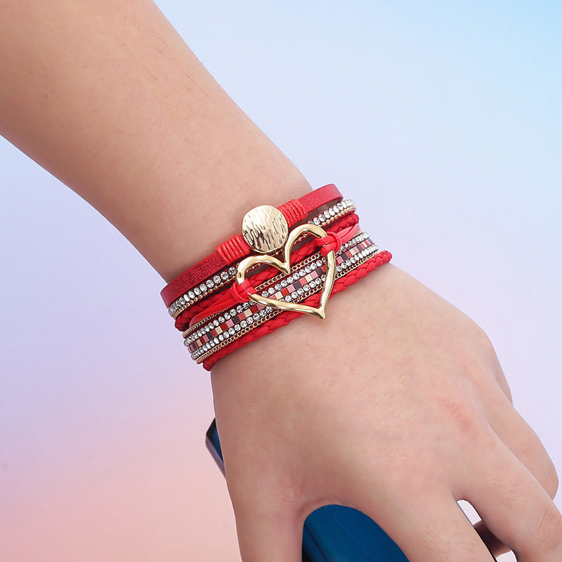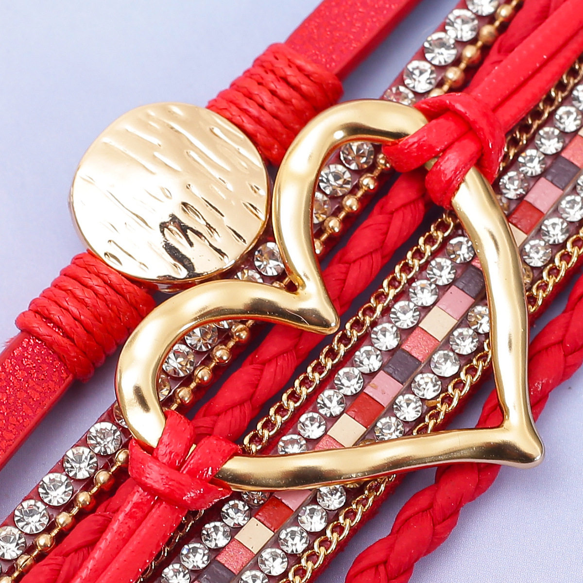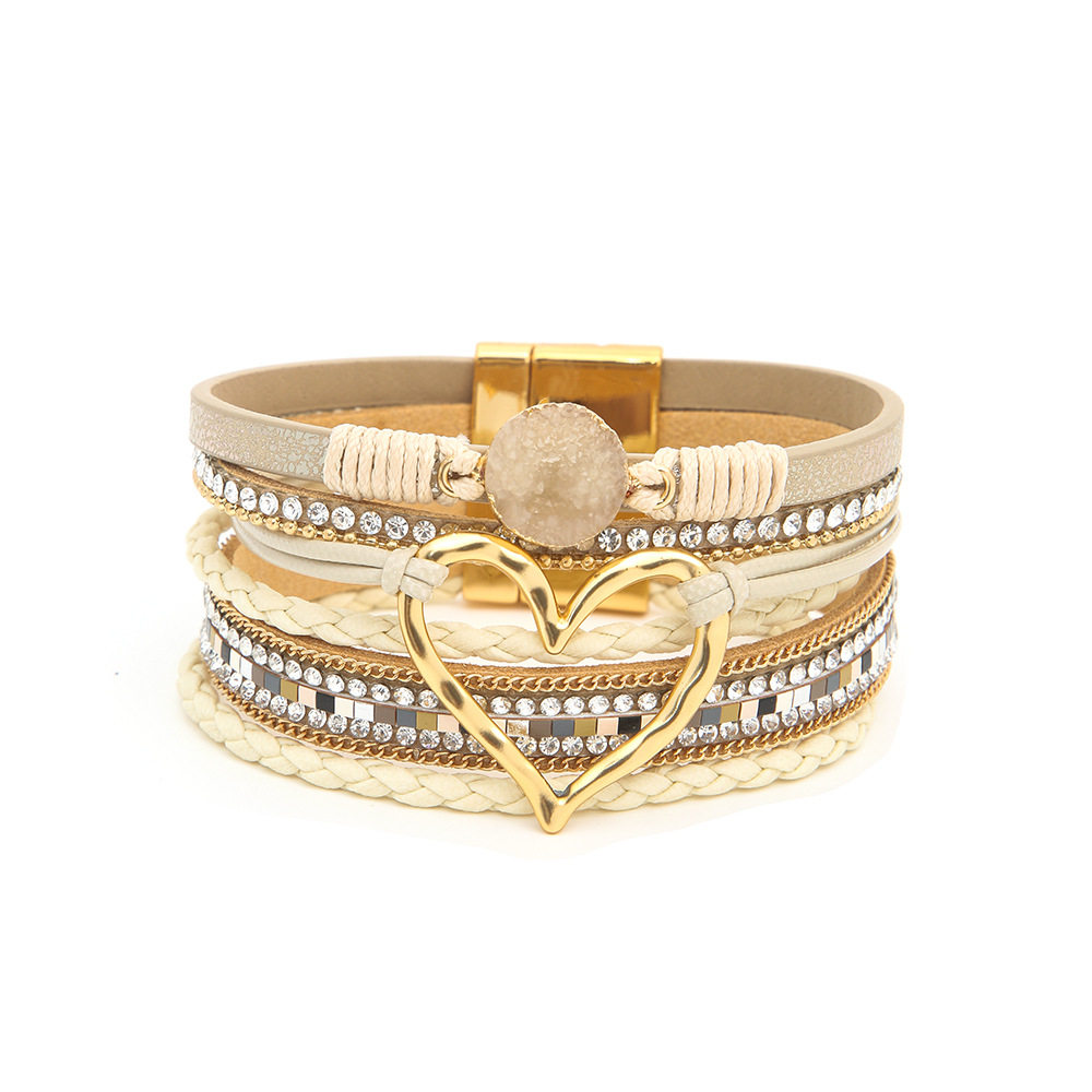 Cross-border Hot Sale Bohemian Multi-layer Leather Bracelet Hand-woven Bracelet Gold Big Love Lady Bracelet