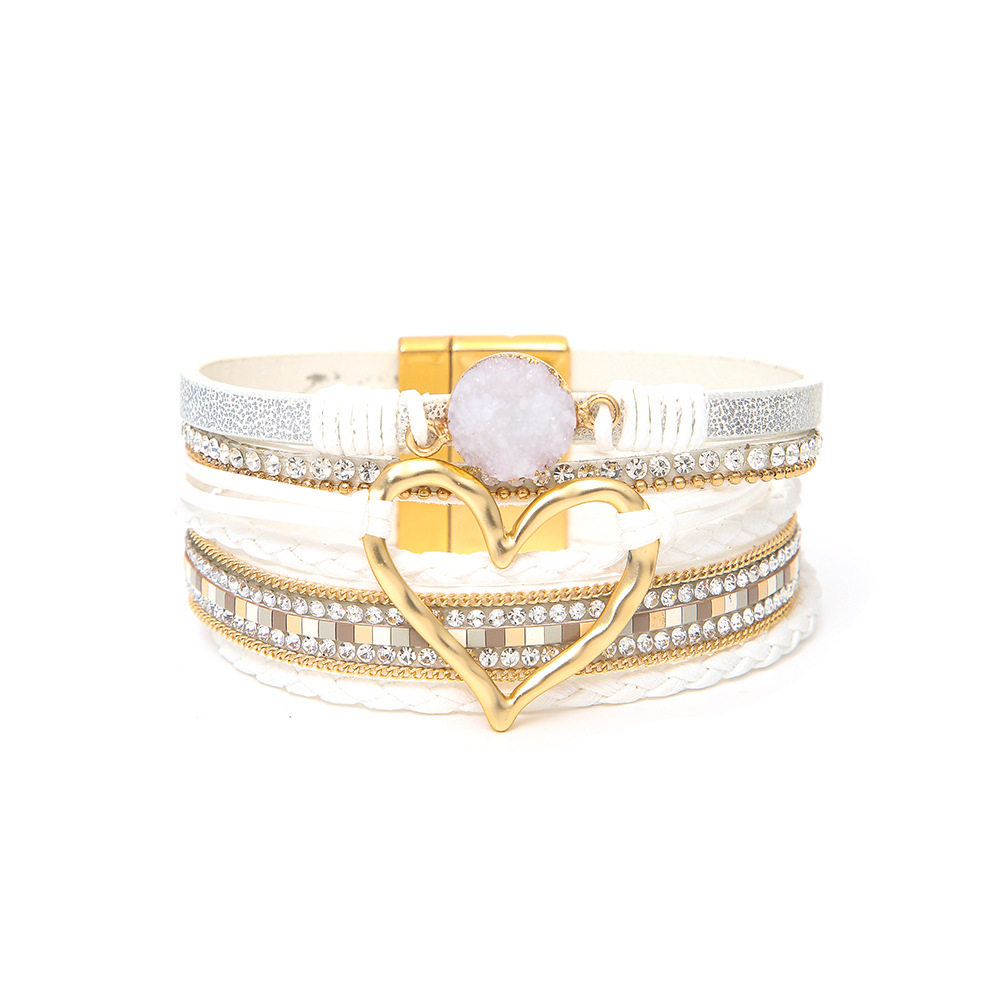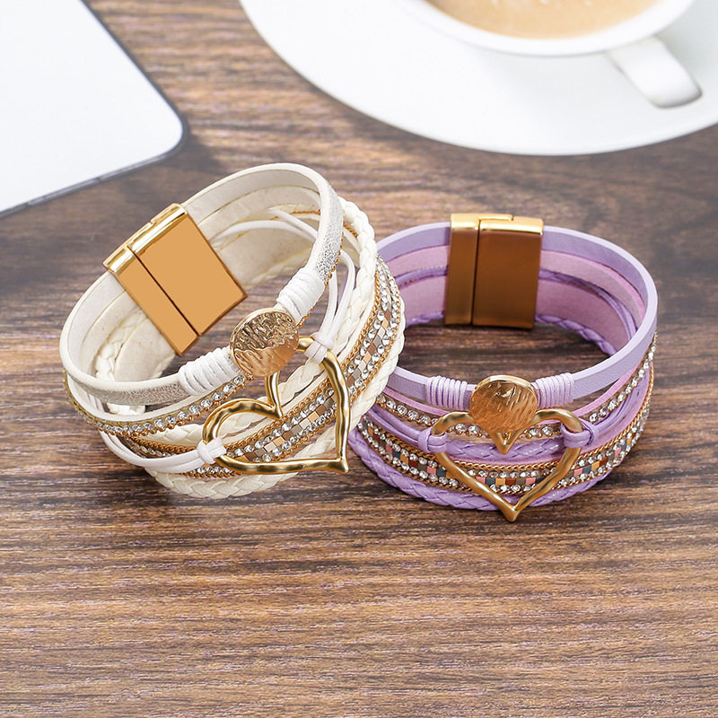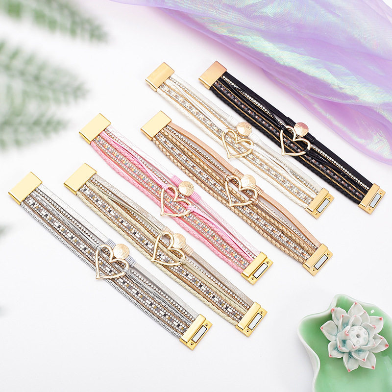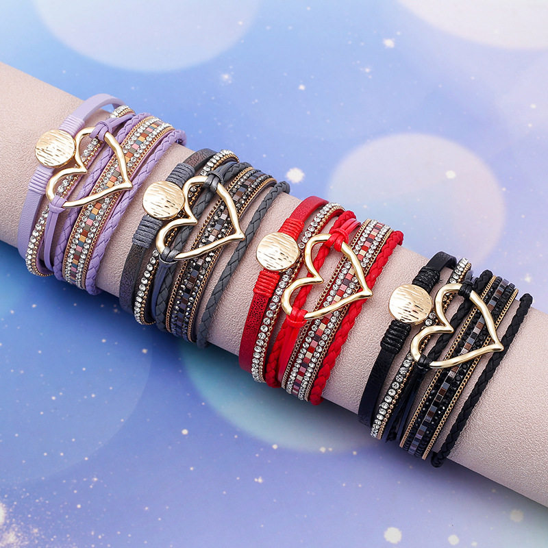 Cross-border Hot Sale Bohemian Multi-layer Leather Bracelet Hand-woven Bracelet Gold Big Love Lady Bracelet