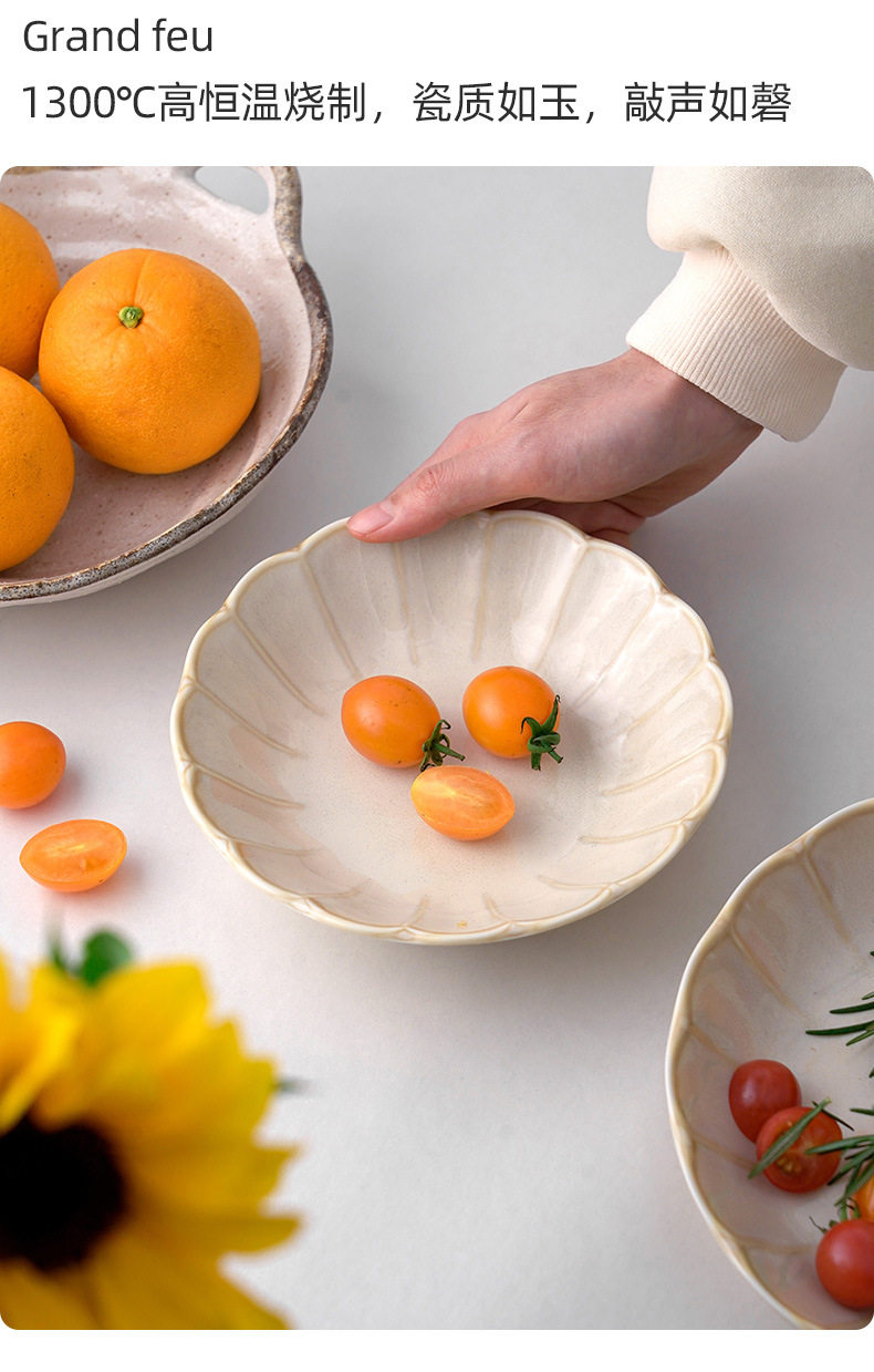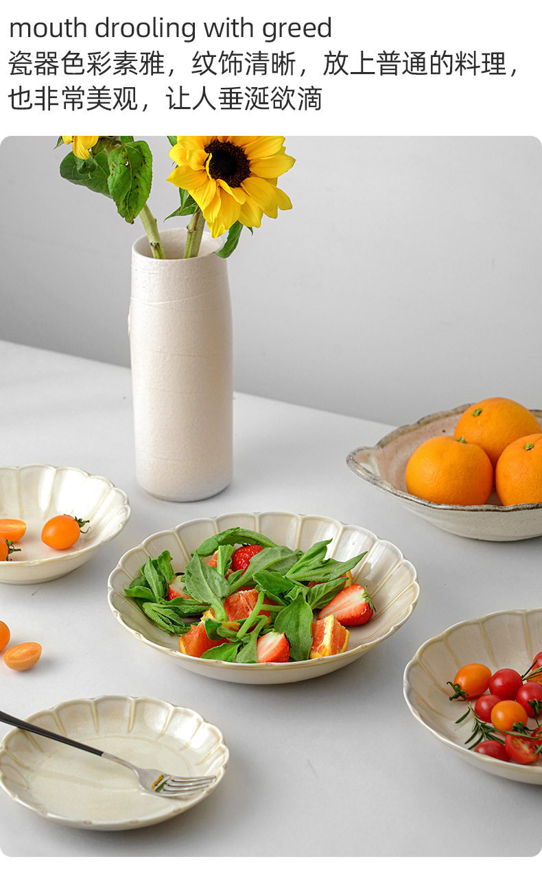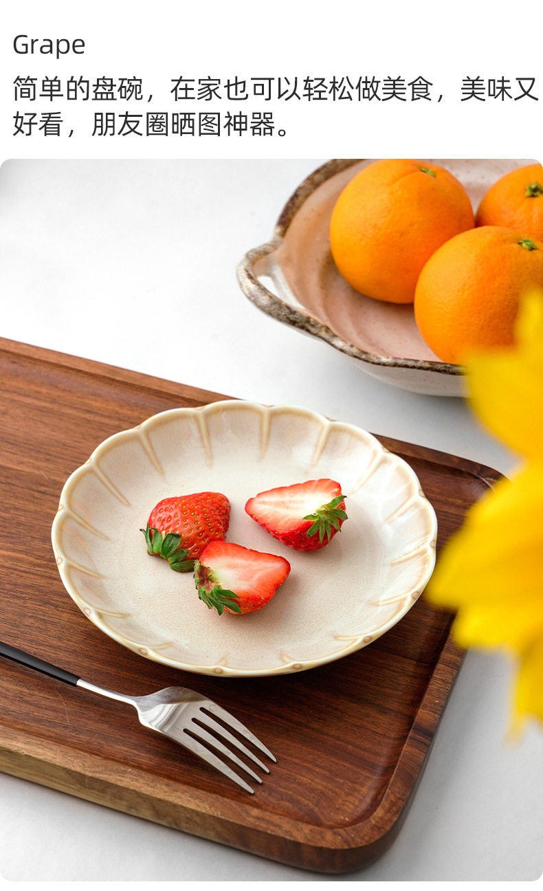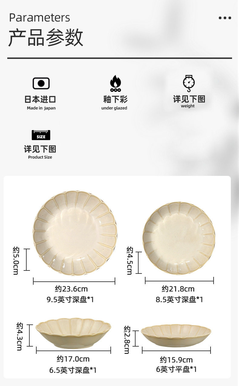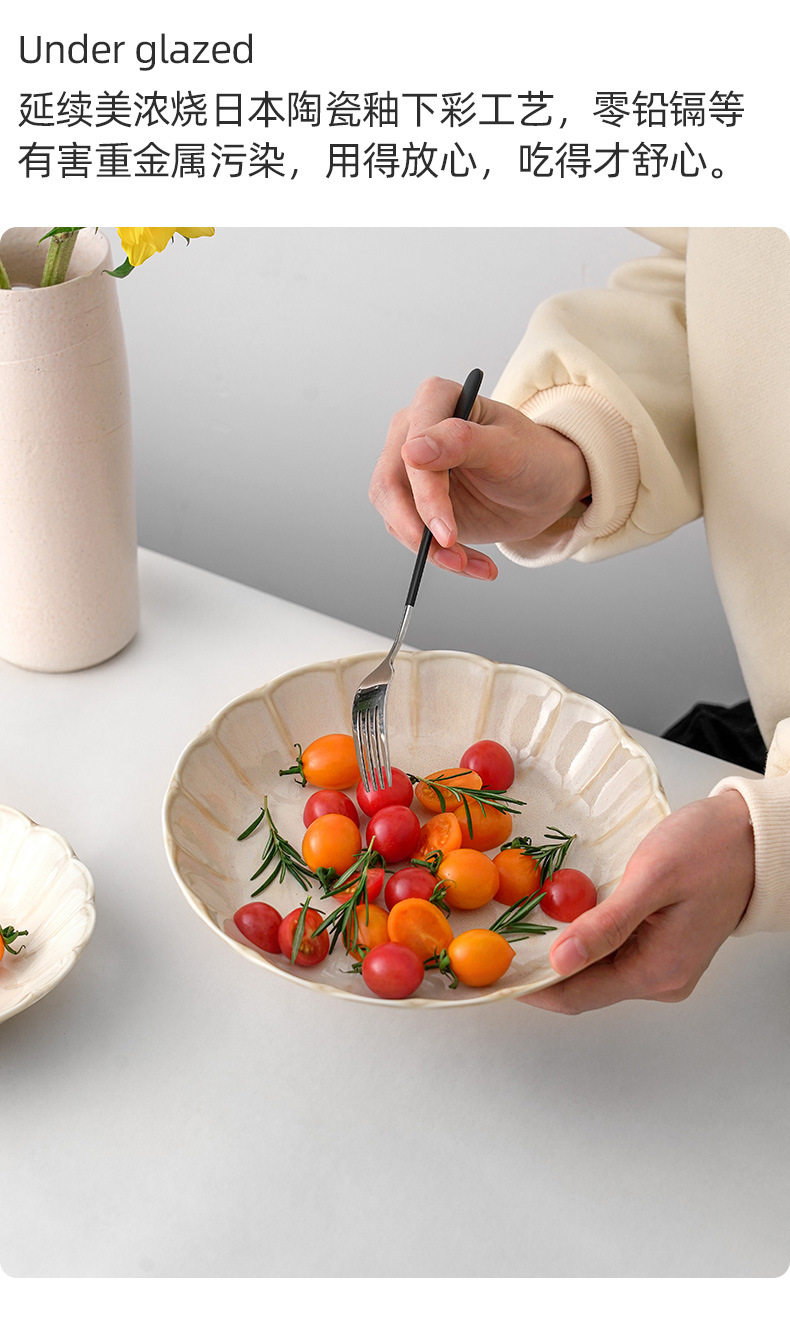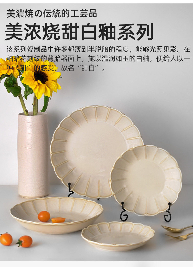 Mino-Yaki Japanese Imported Household Flat Plate Japanese Retro Creative Breakfast Plate Ceramic Dish Plate Sweet White Glaze Plate