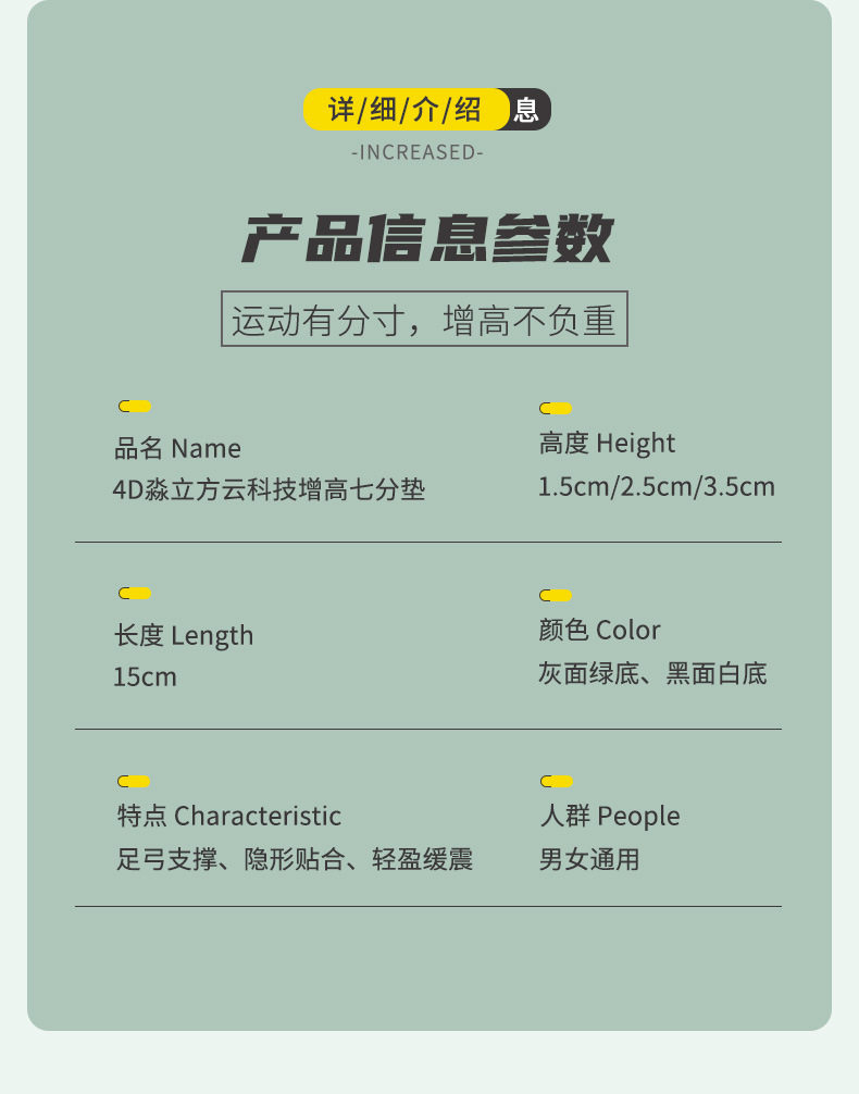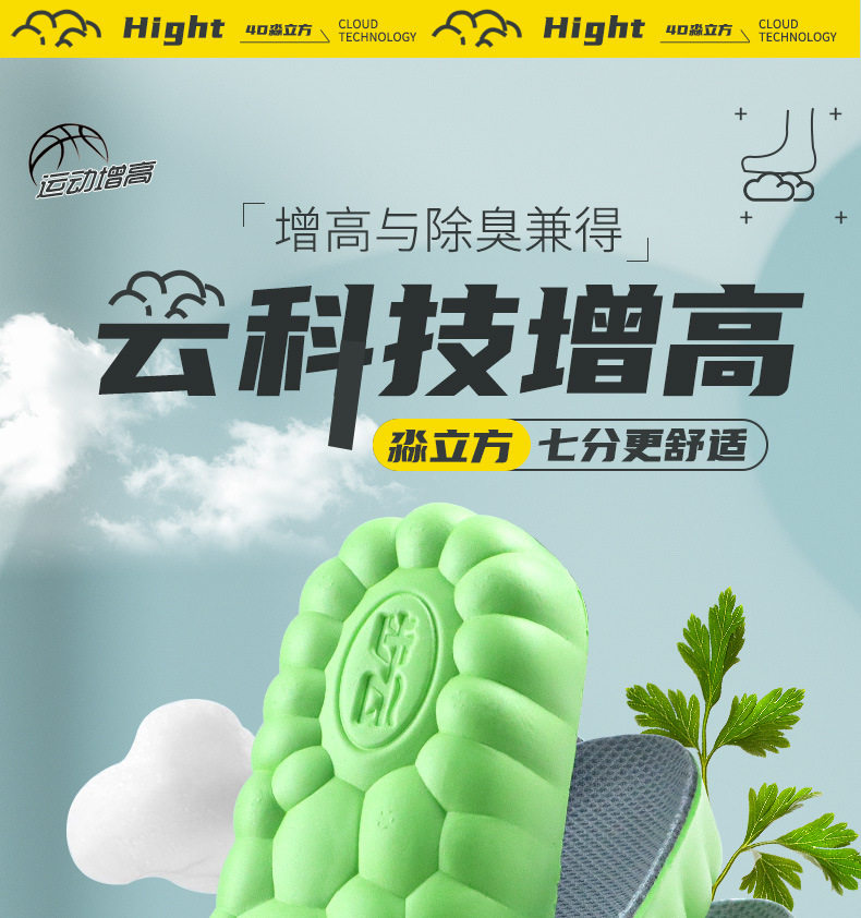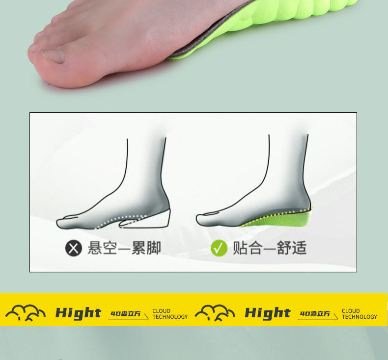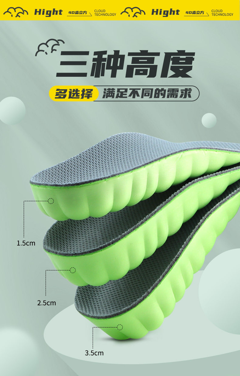 Heightening Insoles for Men and Women Invisible Shock Absorption Comfortable Cloud Technology Martin Boots Inner Heightening Artifact Manufacturer Wholesale