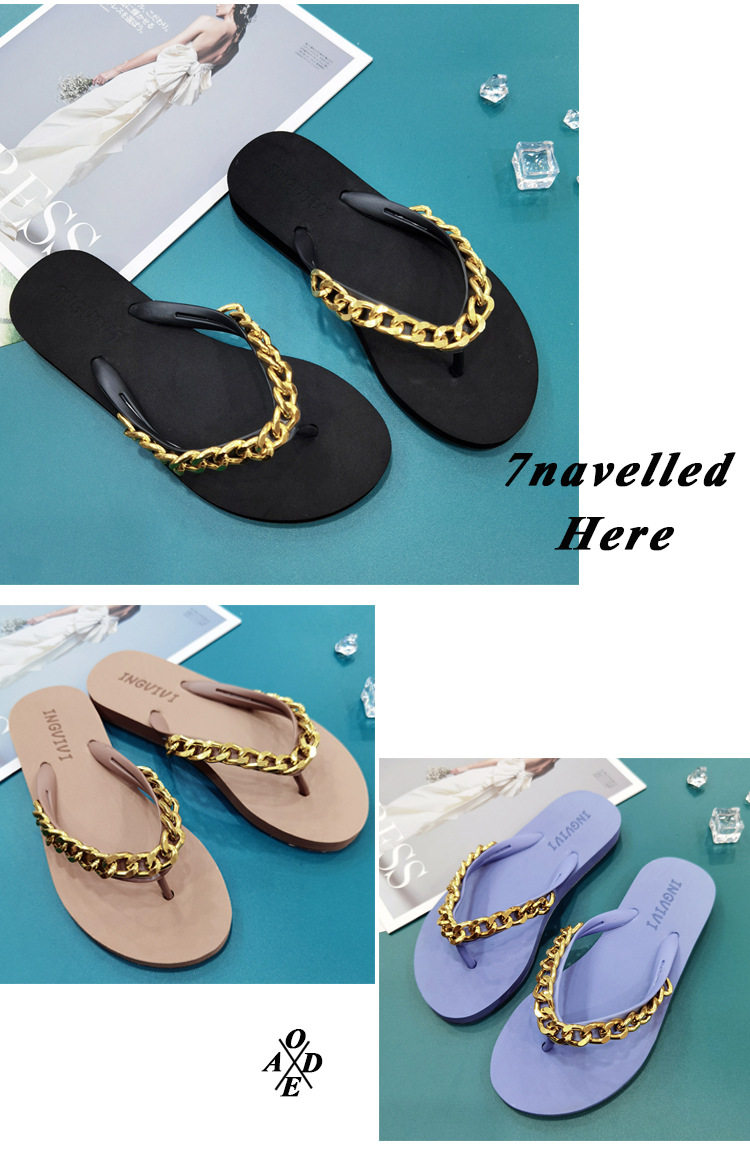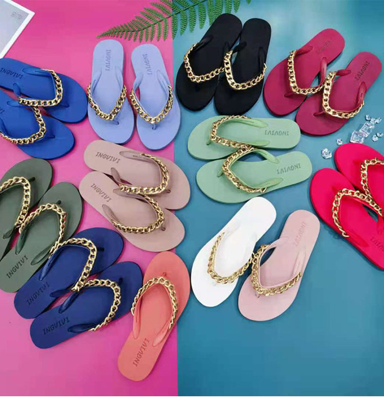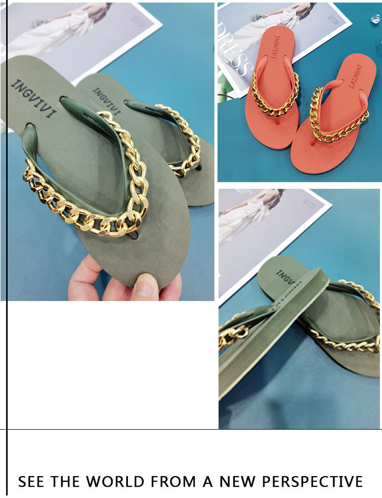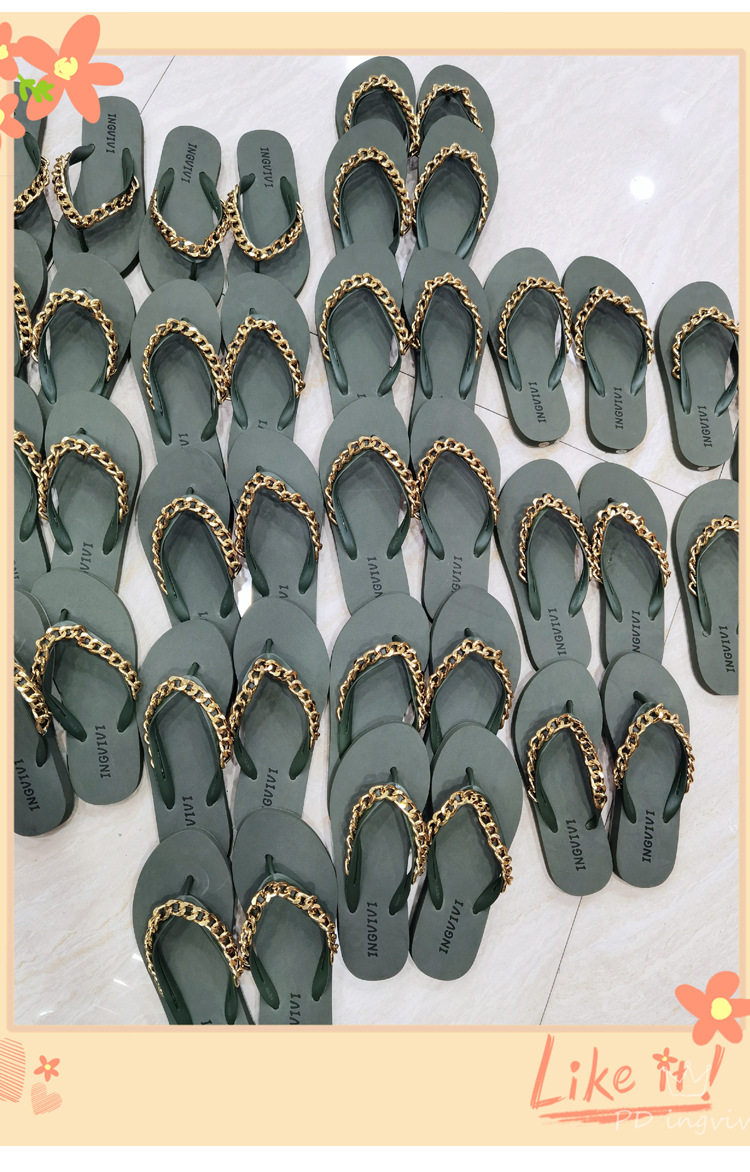 23 New Fashion Flat Flip Flop Women's Summer Beach Shoes Chain Korean Style Rhinestone Women's Slippers Can Be Weared Outside in the Water